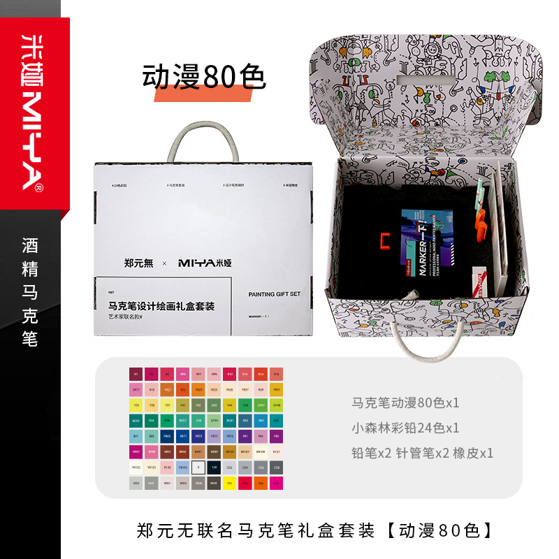 • [애니메이션 디자인 80색] Zheng Yuanwu 공동 브랜드 마커 선물 상자 세트-기타/기타