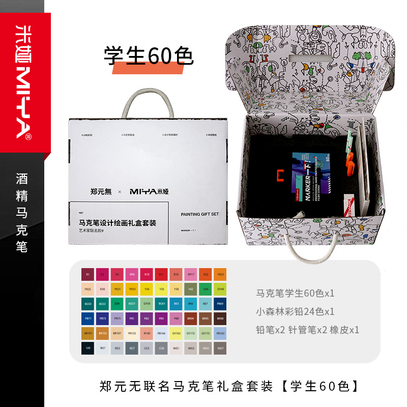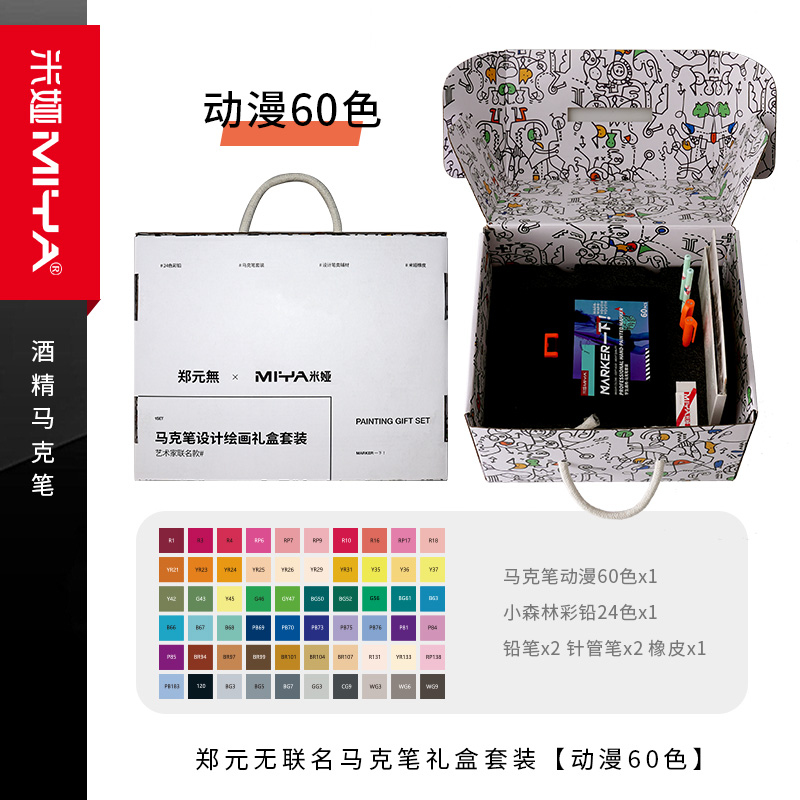 • [애니메이션 디자인 60색] Zheng Yuanwu 공동 브랜드 마커 선물 상자 세트-기타/기타