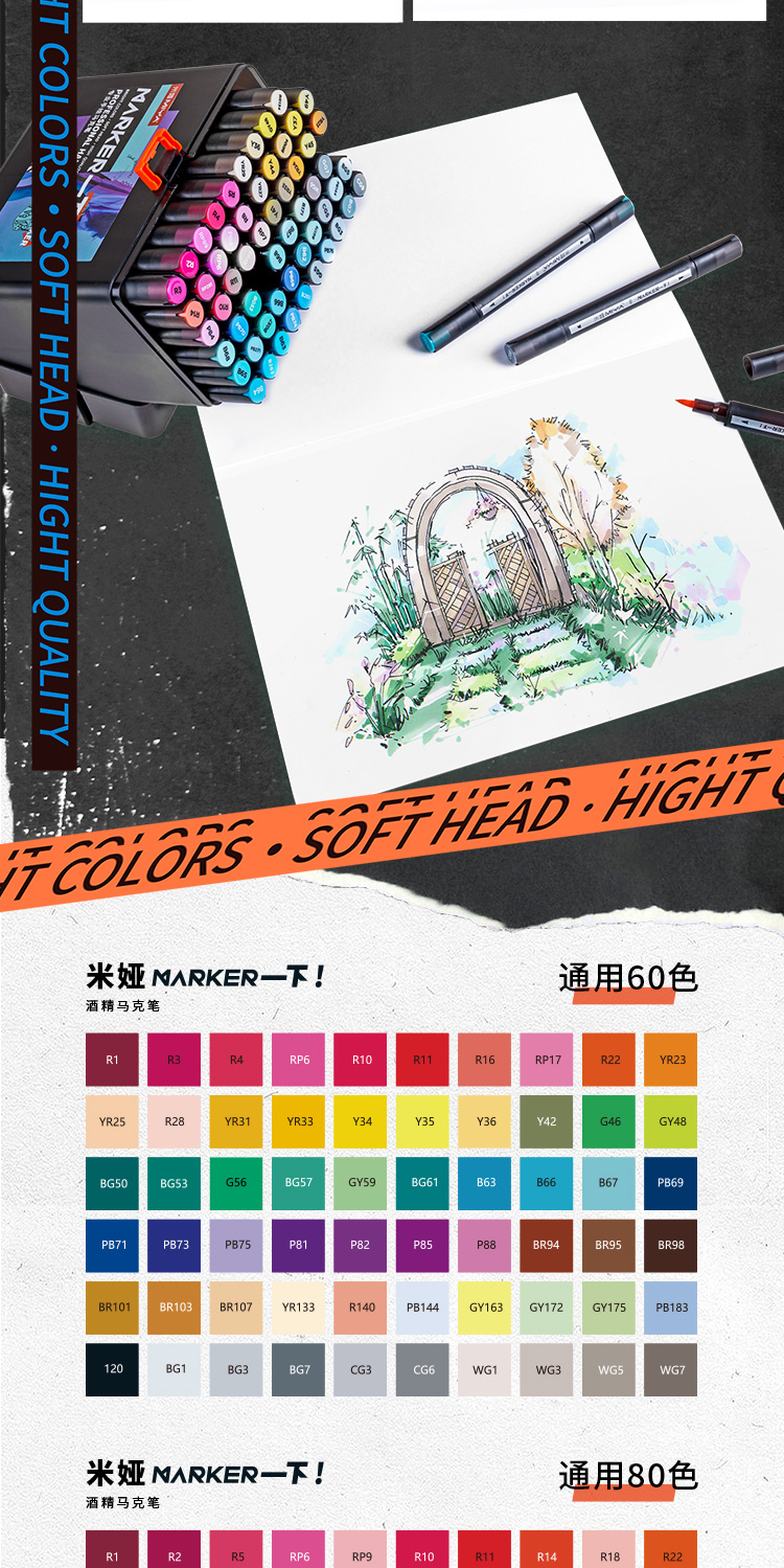 소프트 헤드 마커 펜 학생 아트 48 컬러 더블 헤드 유성 80 컬러 세트 애니메이션 불투명 빠른 건조 168 컬러 60