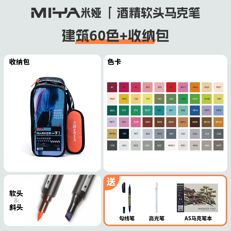 • [건축산업디자인 60색] 미아알코올마커+마커수납가방-그것