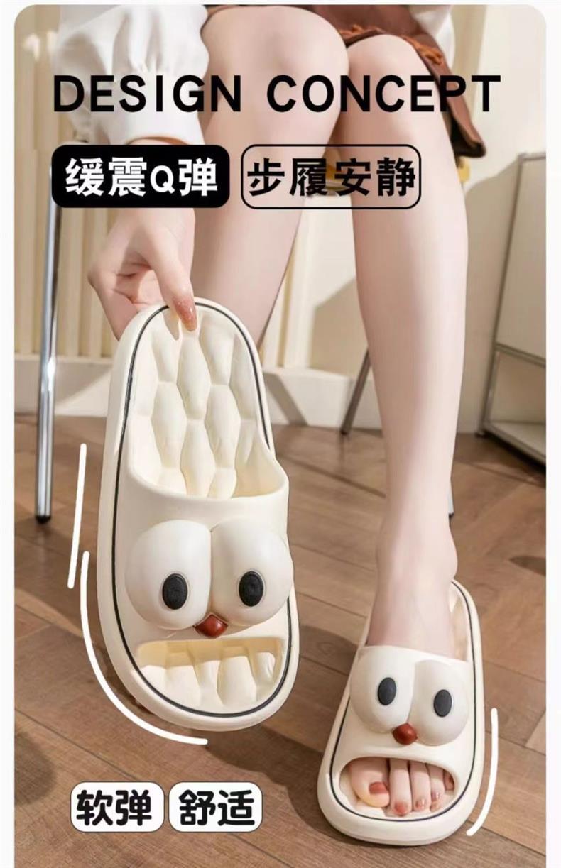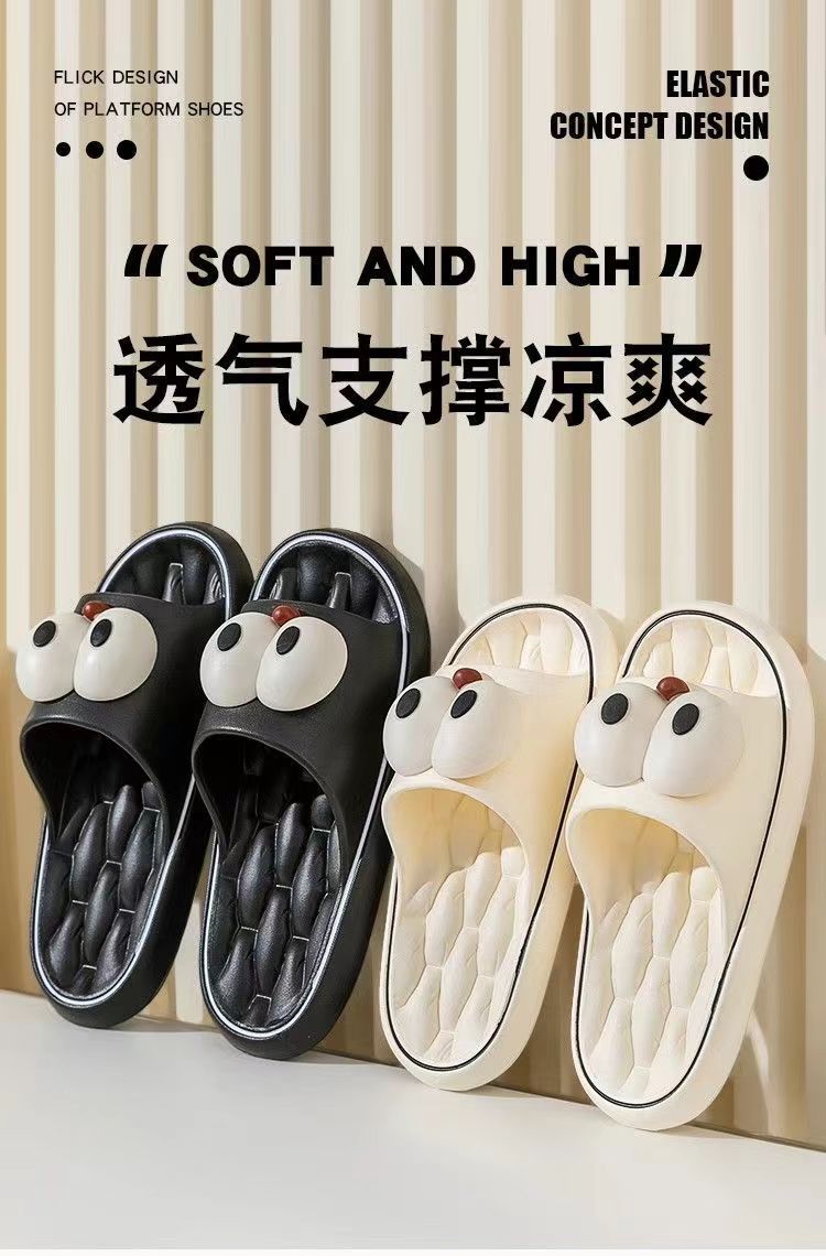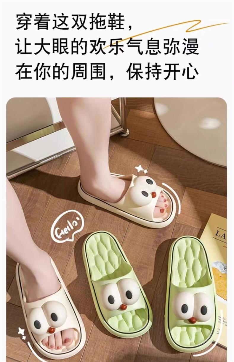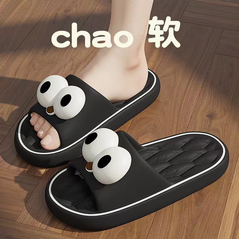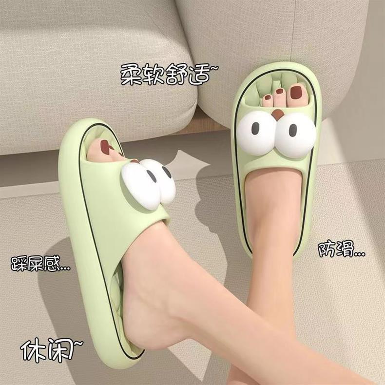 2024 새로운 큰 눈 샌들 및 슬리퍼 여성의 여름 외부 착용 두꺼운 바닥 배설물 느낌 홈 실내 미끄럼 방지 귀여운 슬리퍼스토어 가기