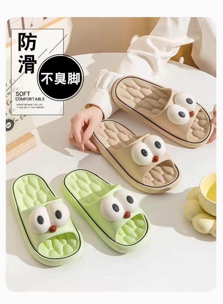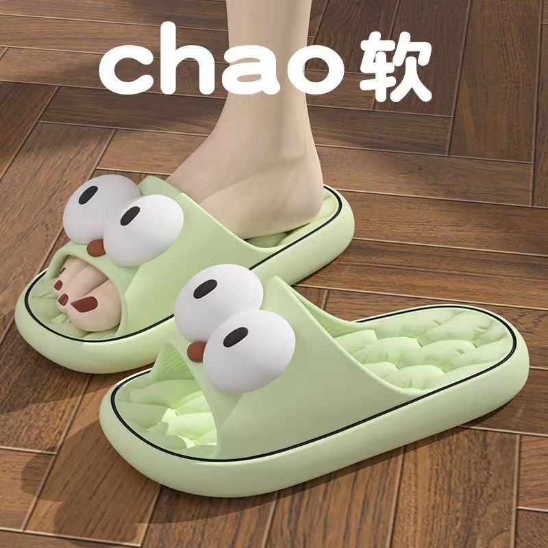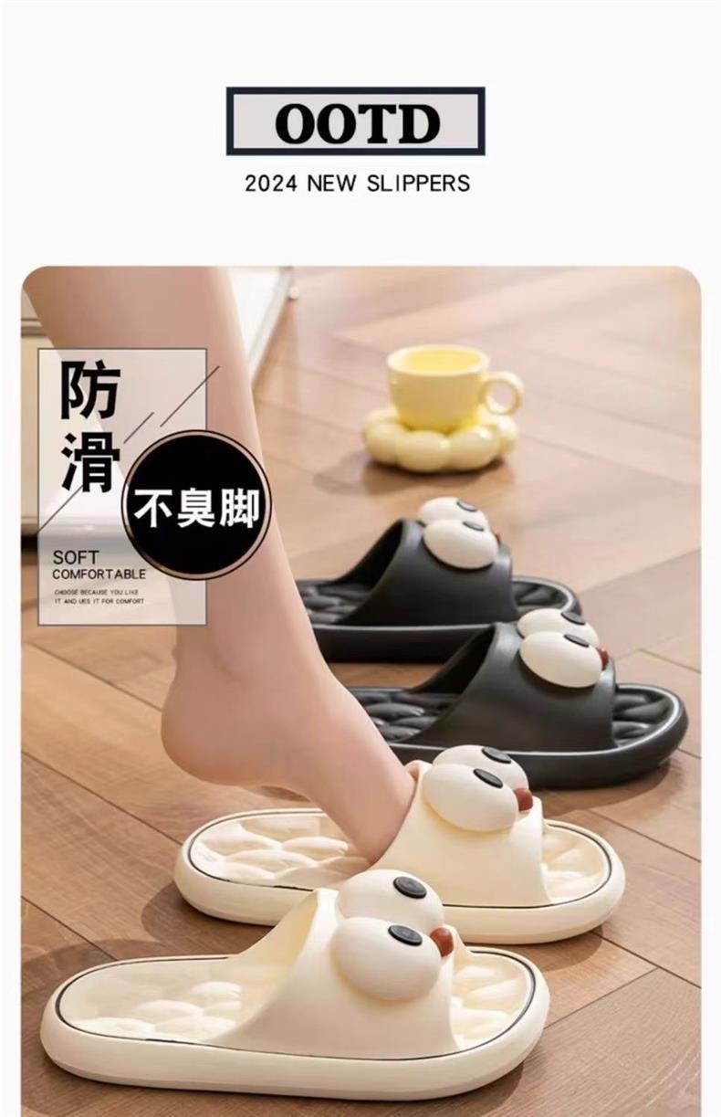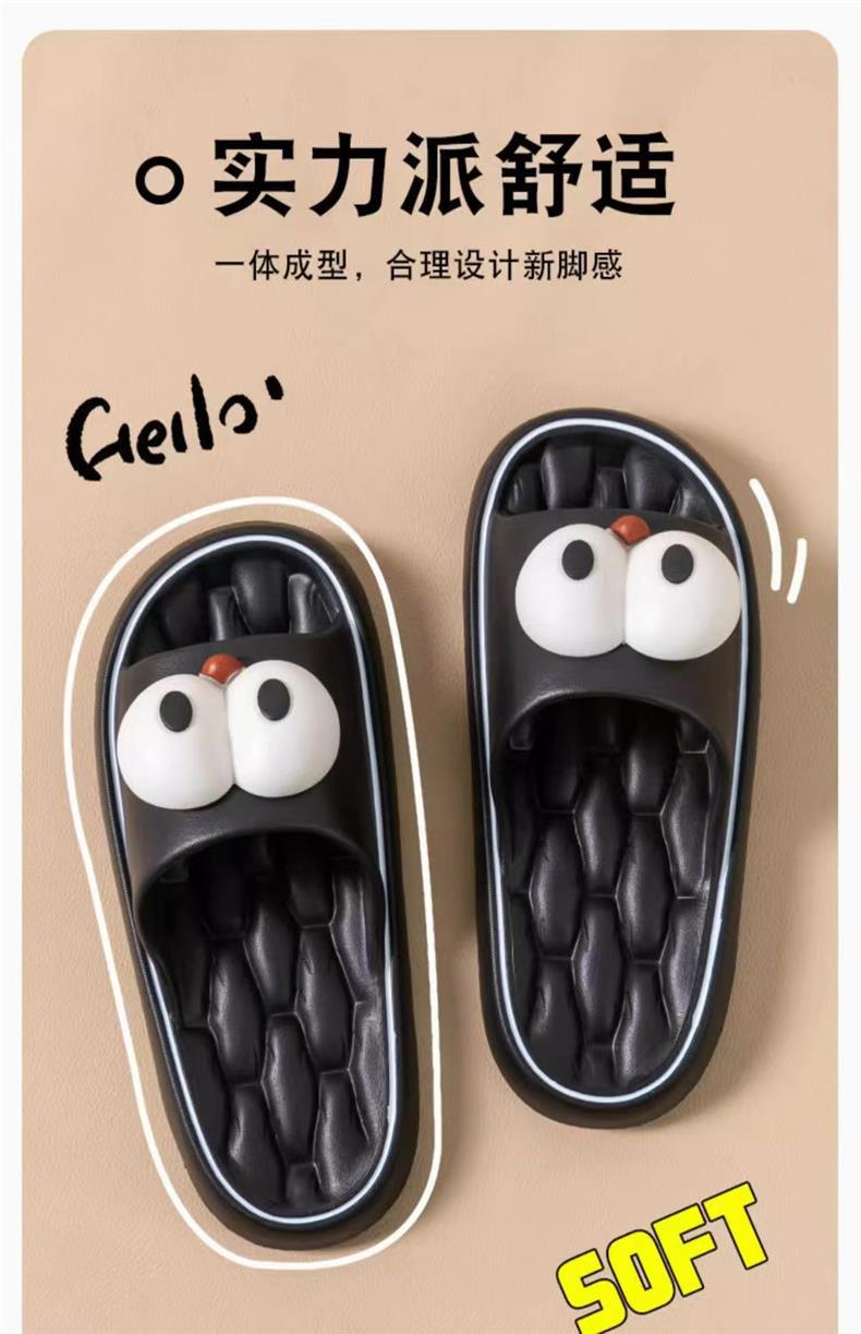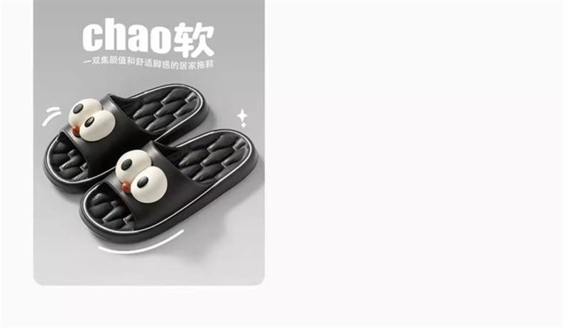 2024 새로운 큰 눈 샌들 및 슬리퍼 여성의 여름 외부 착용 두꺼운 바닥 배설물 느낌 홈 실내 미끄럼 방지 귀여운 슬리퍼스토어 가기
