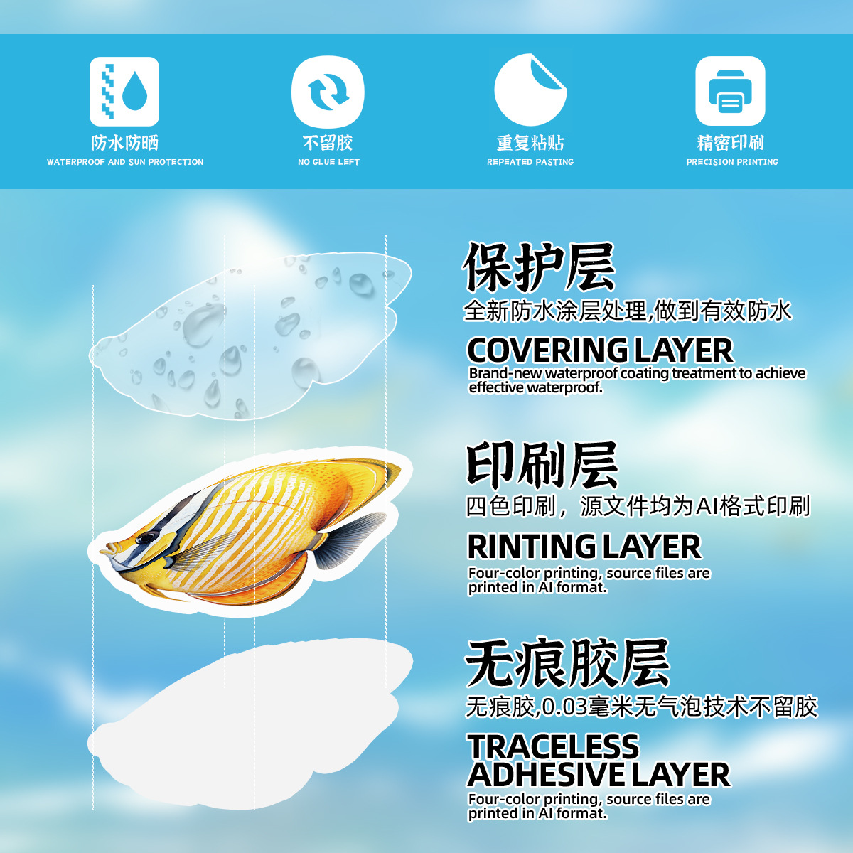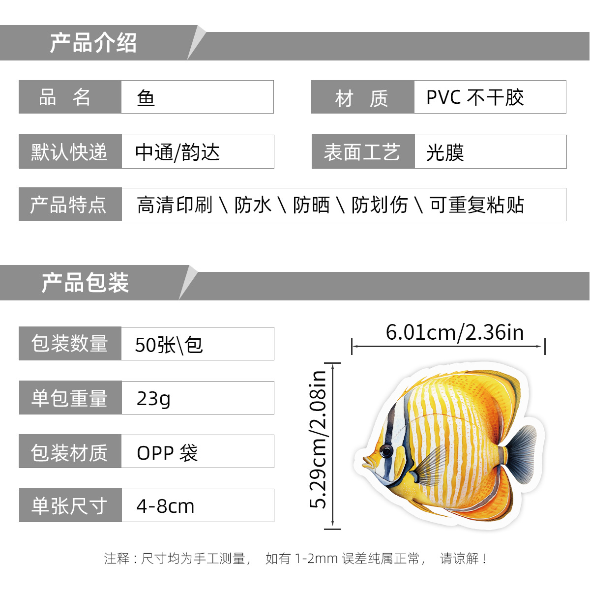 국경 50 비 반복 물고기 스티커 휴대 전화 컵 방수 긁힘 방지 장식 스티커 어린이 손 계정 스티커 도매