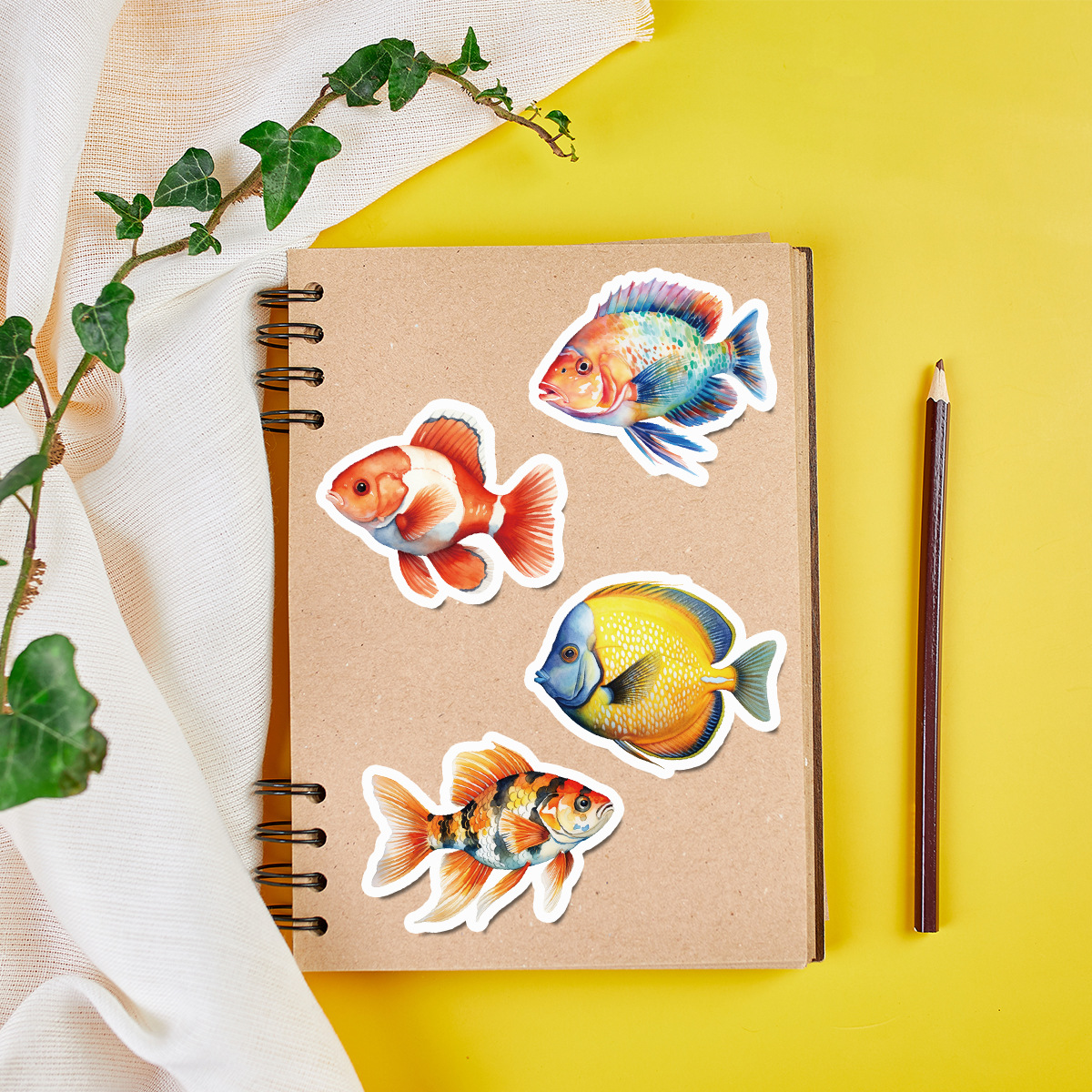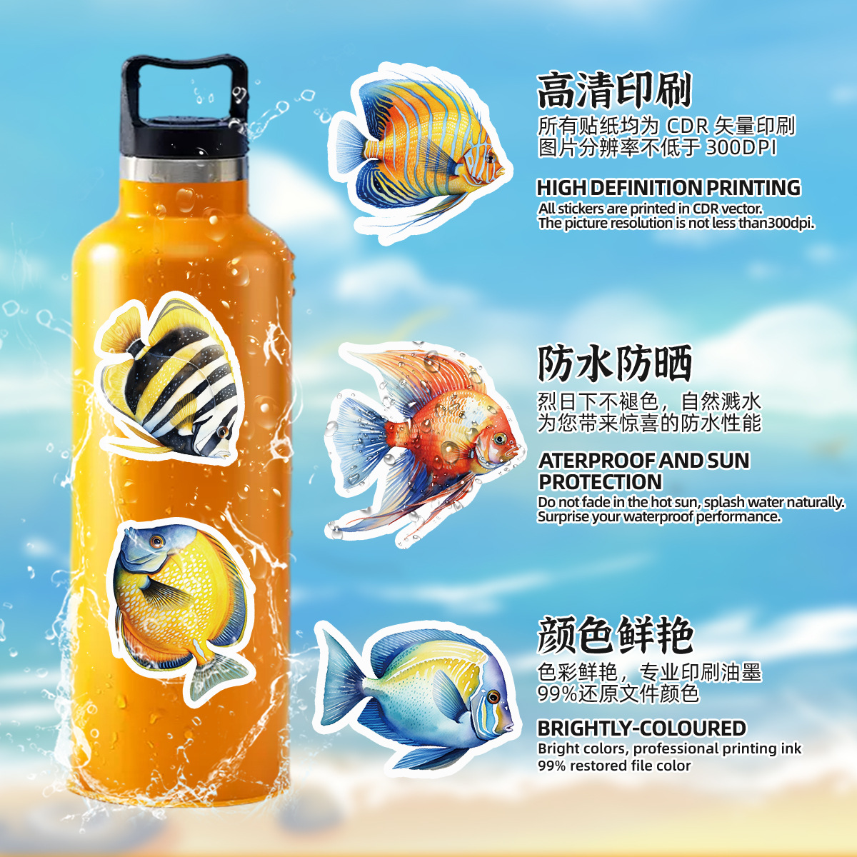 국경 50 비 반복 물고기 스티커 휴대 전화 컵 방수 긁힘 방지 장식 스티커 어린이 손 계정 스티커 도매스토어 가기