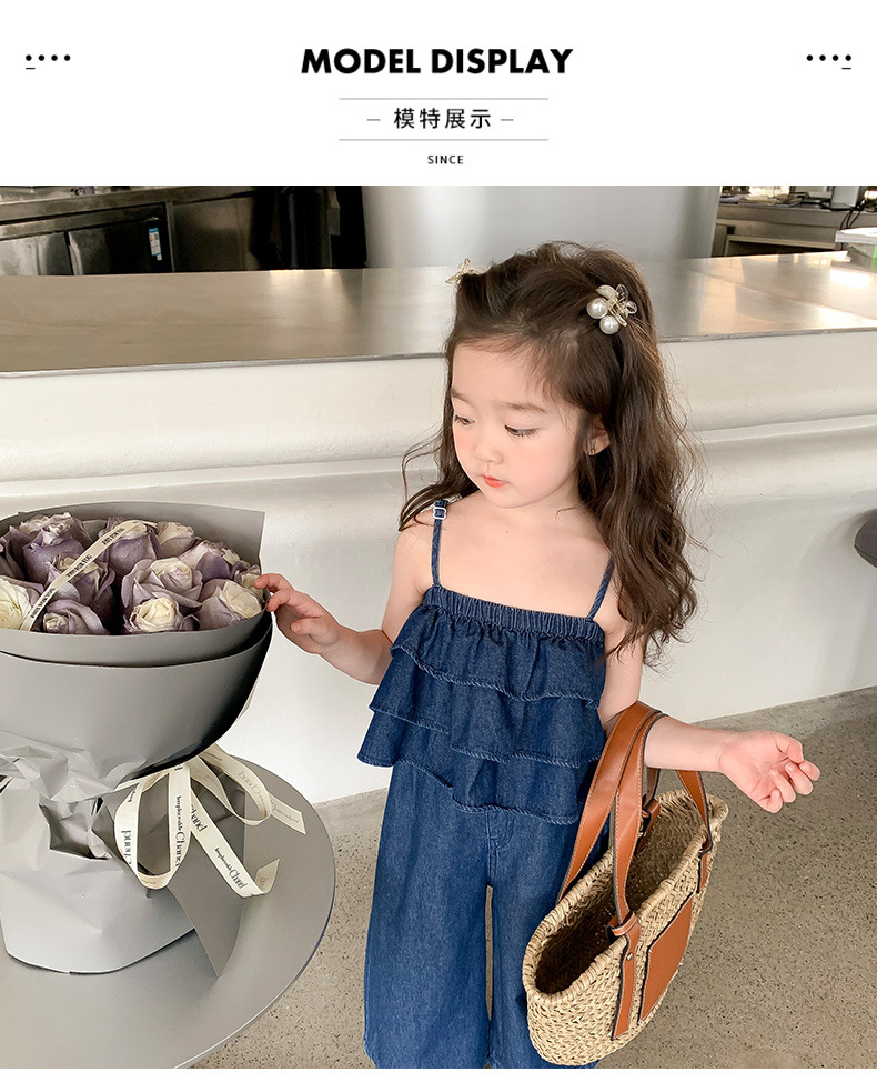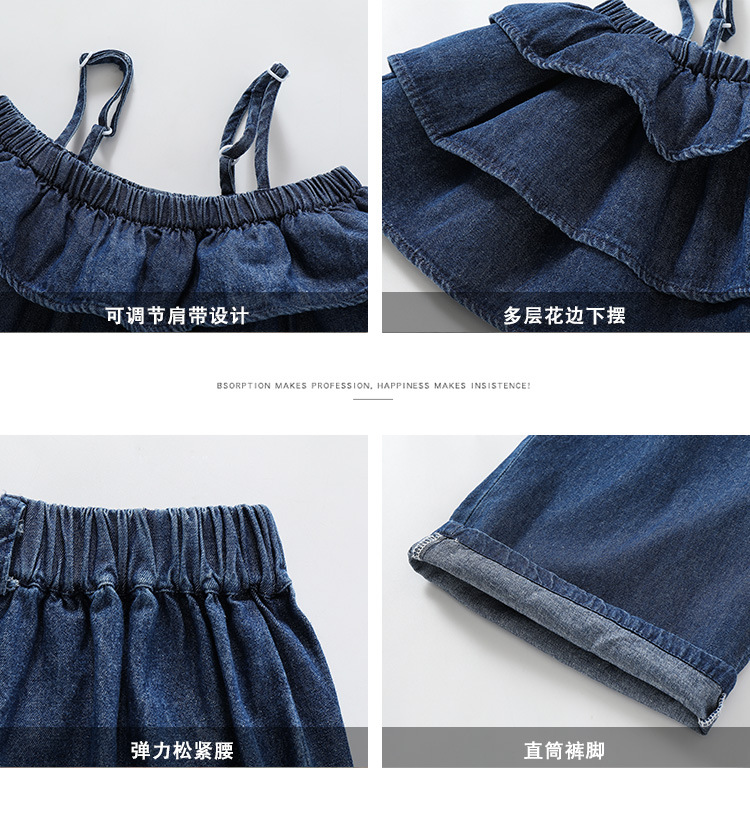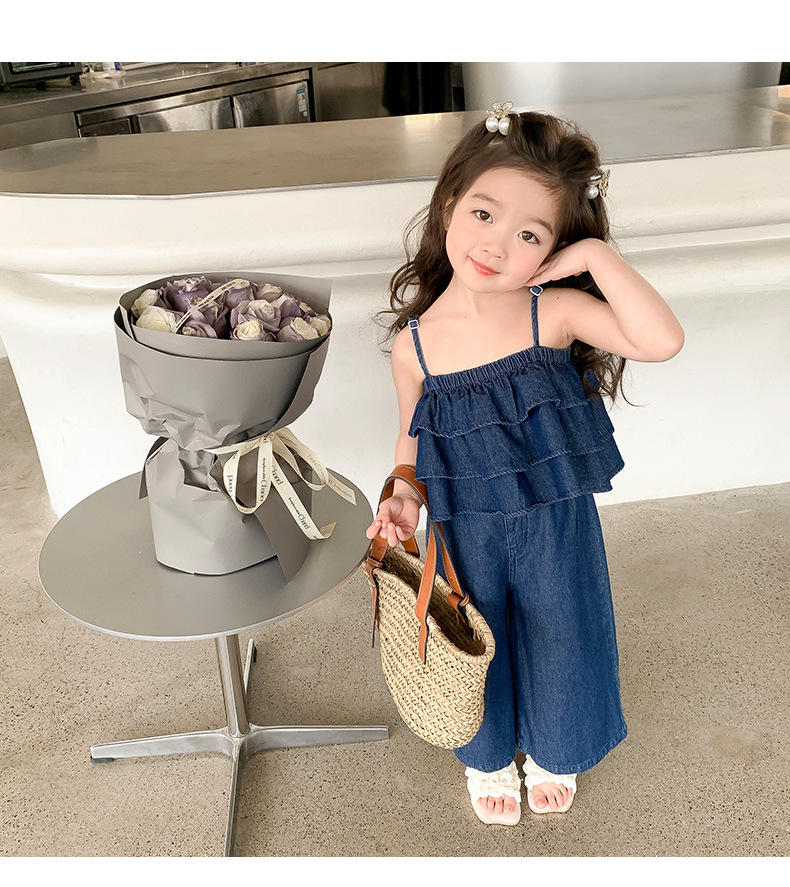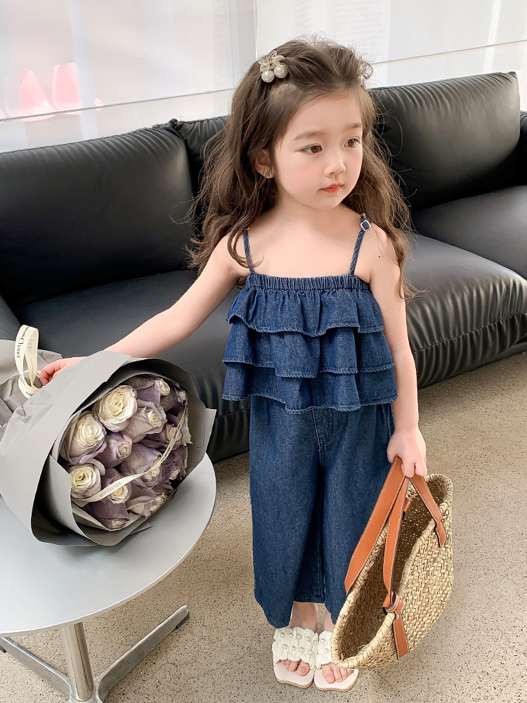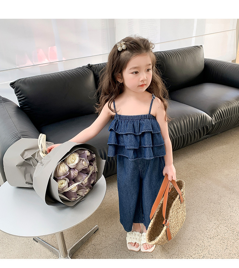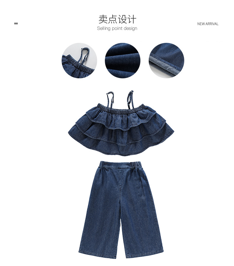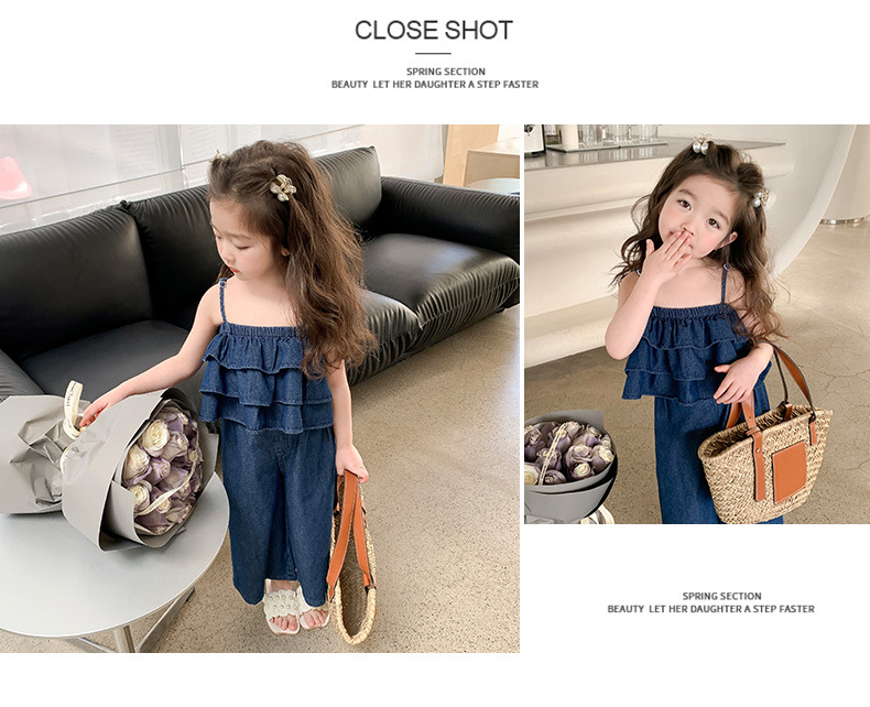 소녀 데님 슬링 세트 여름 새로운 서양식 아동복 아기 소녀 캐주얼 투피스 세트 국경 간 대외 무역스토어 가기