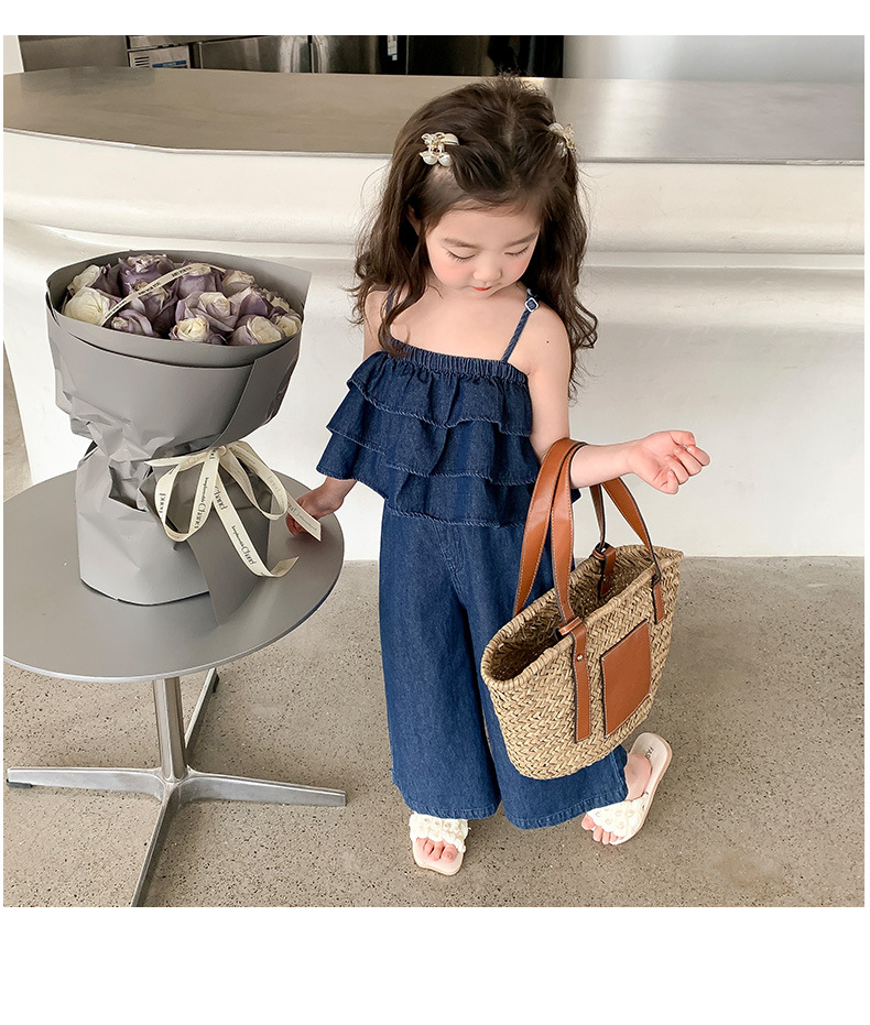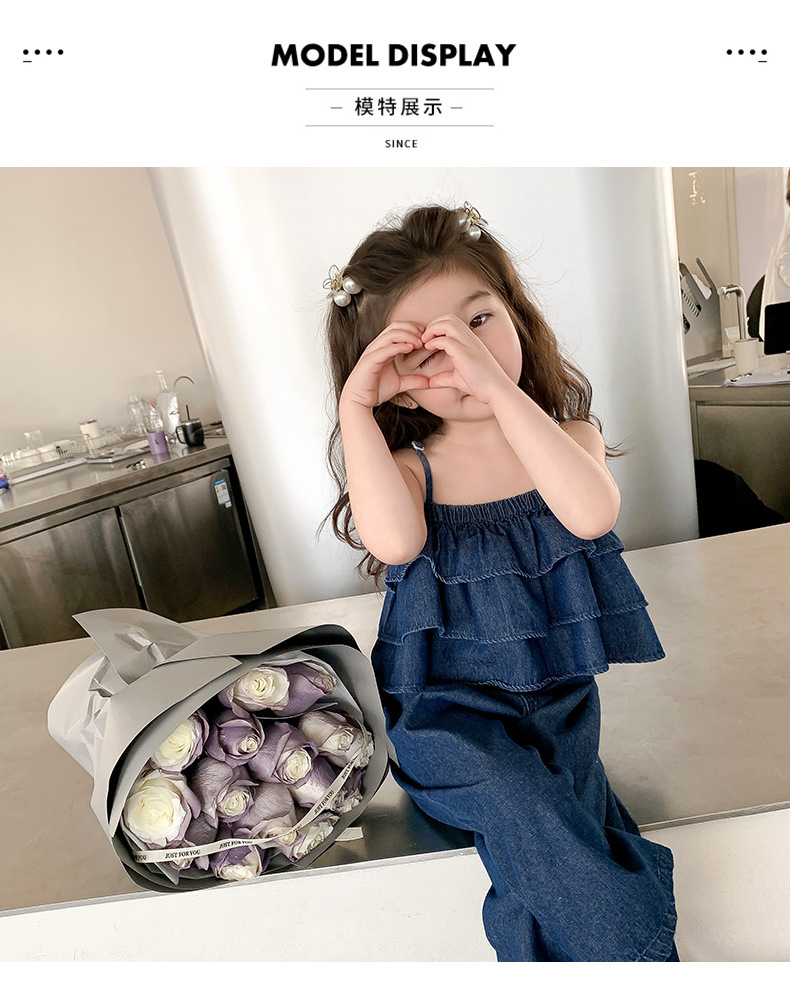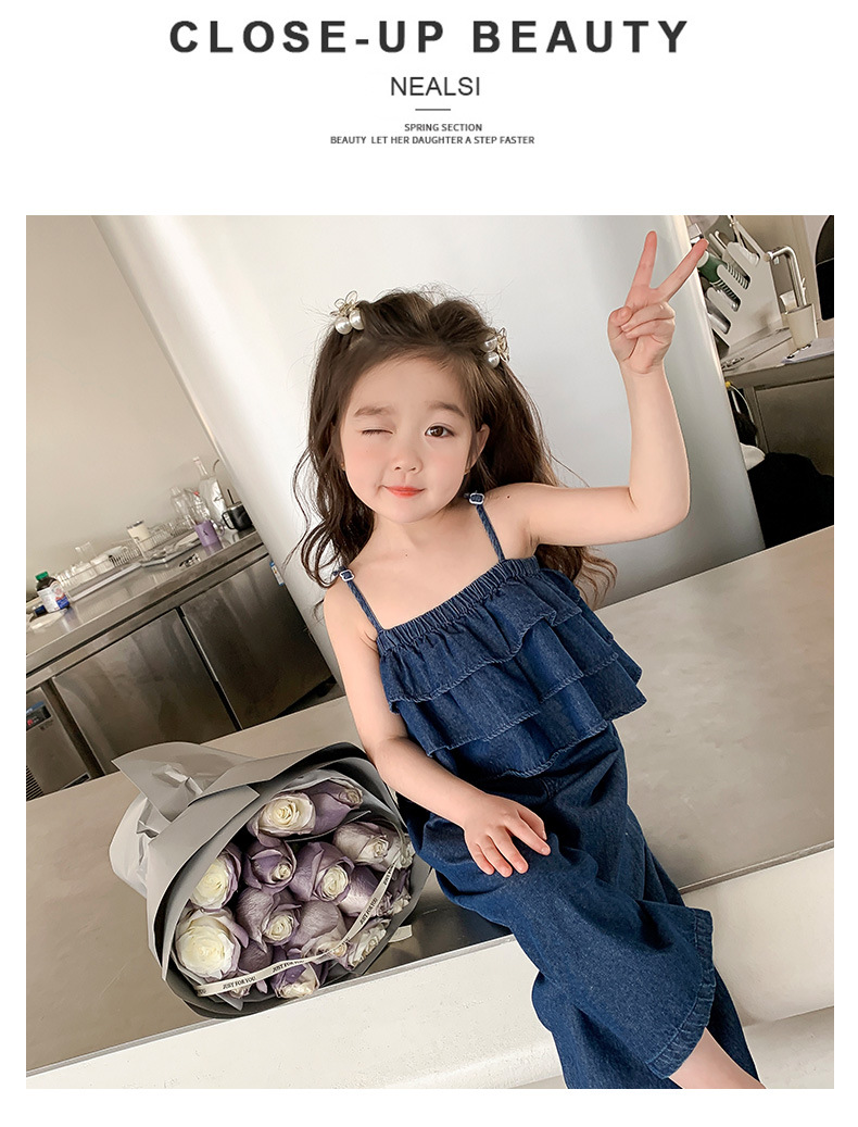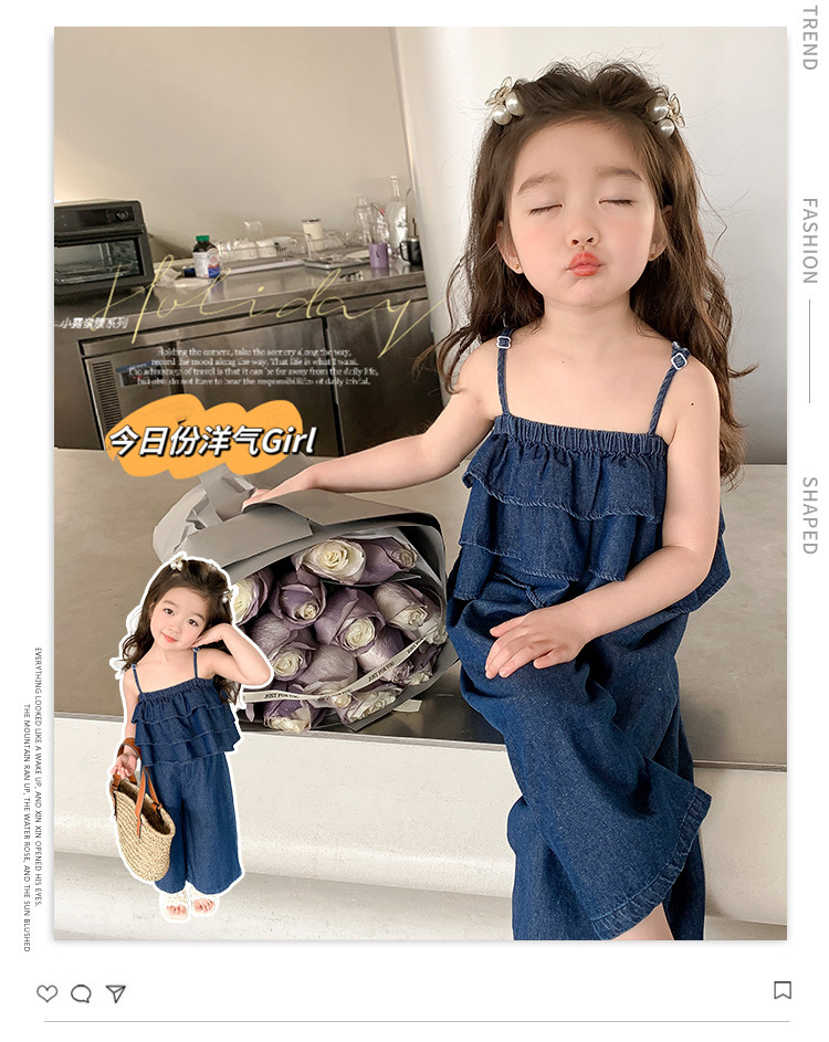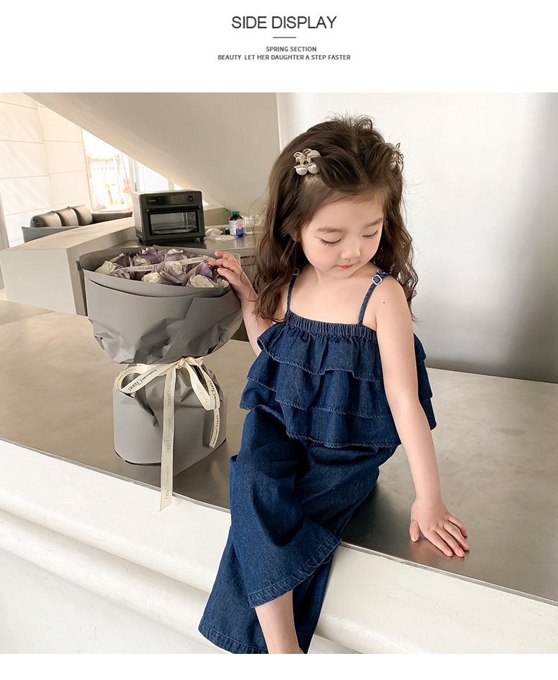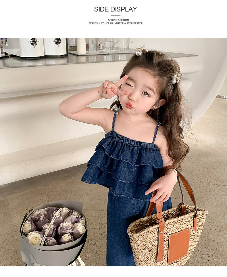 소녀 데님 슬링 세트 여름 새로운 서양식 아동복 아기 소녀 캐주얼 투피스 세트 국경 간 대외 무역스토어 가기