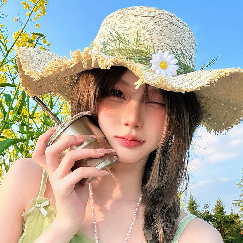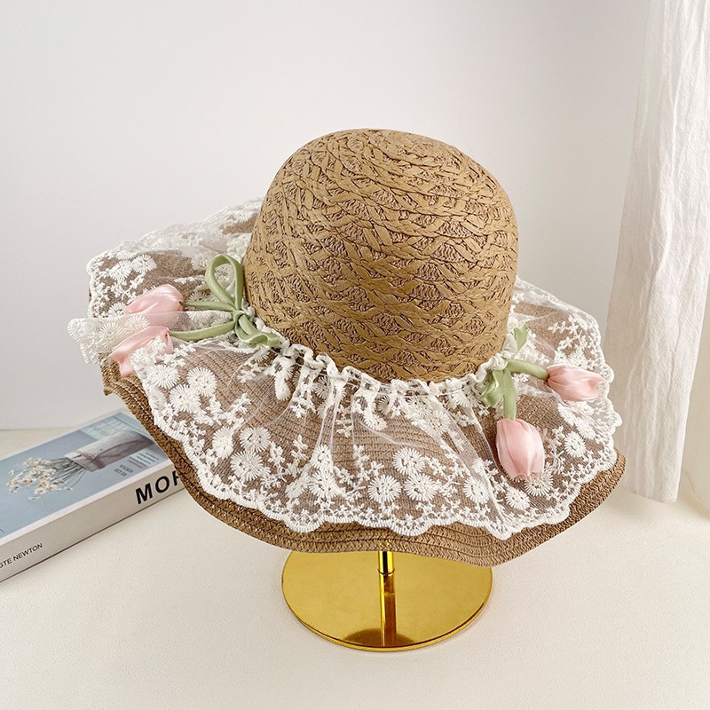 • D- 525m 컬러 꽃무늬 레이스 밀짚모자
