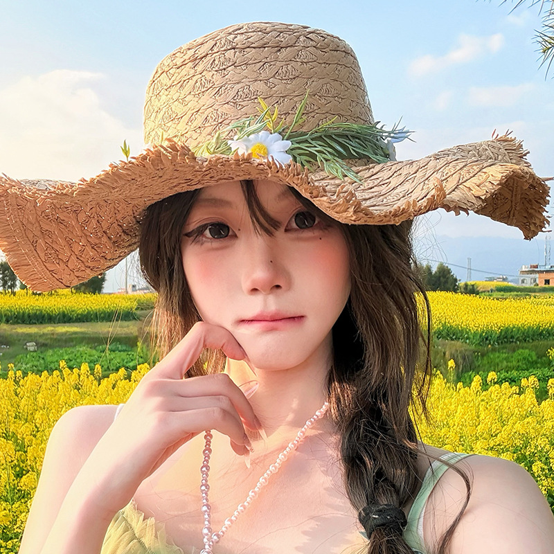 • D- 425m 컬러 레이스 진주 퍼 엣지 밀짚모자