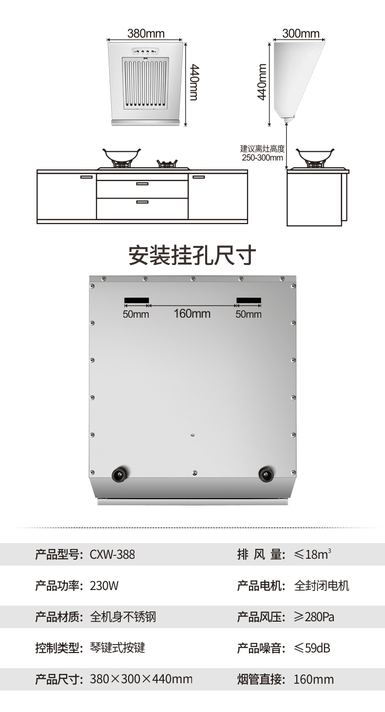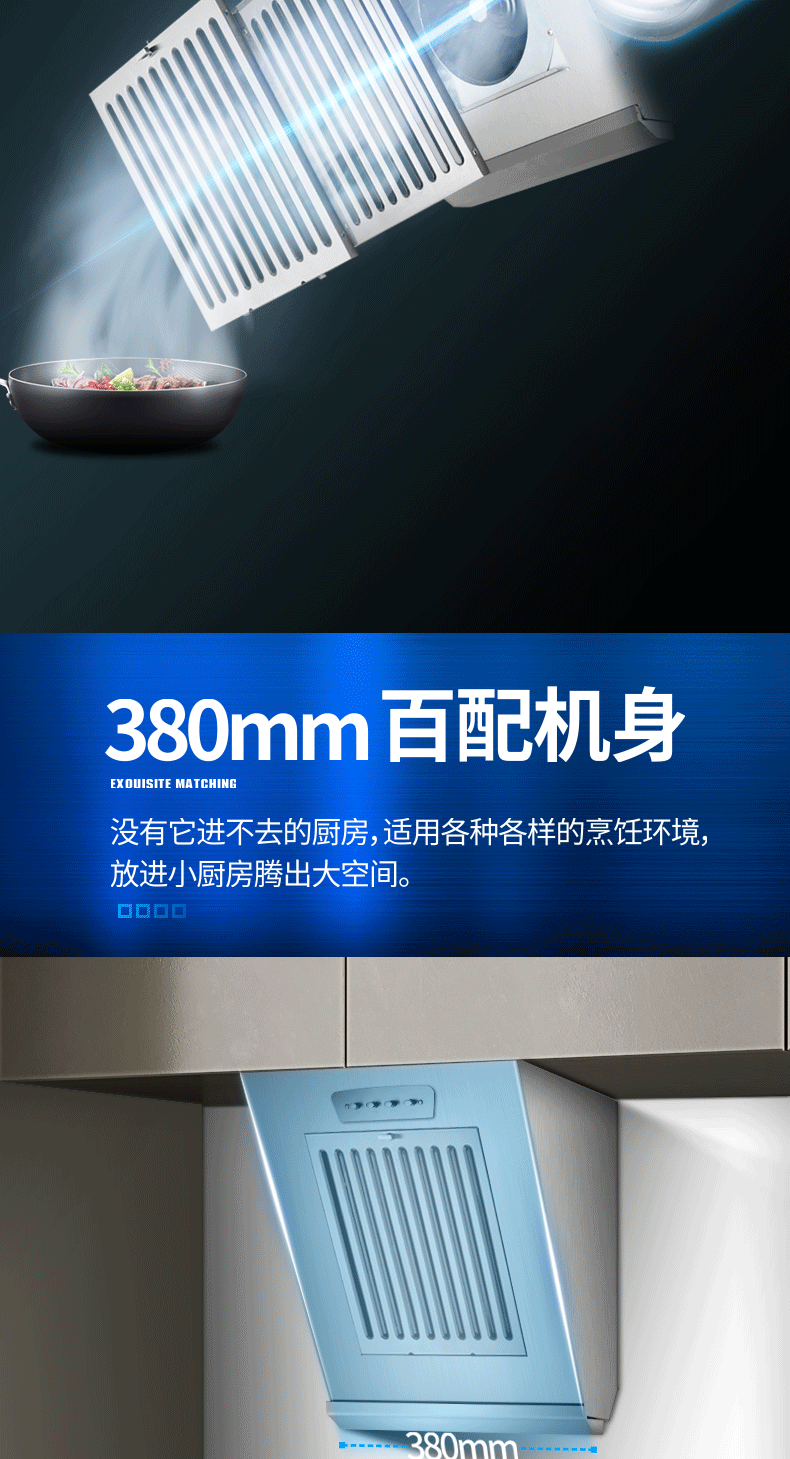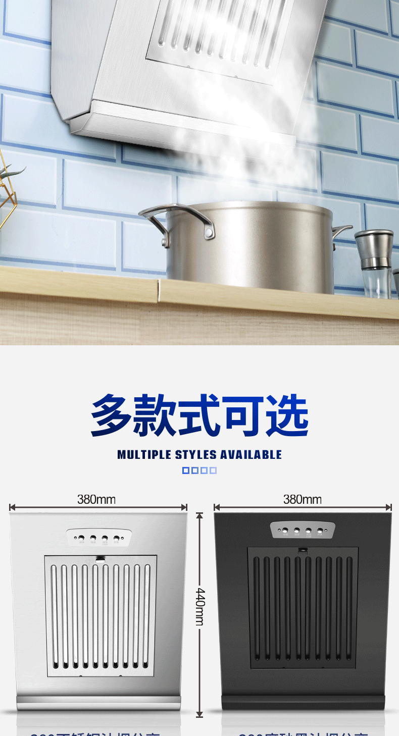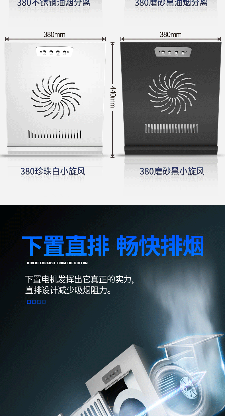 • 380mm 스테인리스 스틸 버튼(오일 연기 분리)
