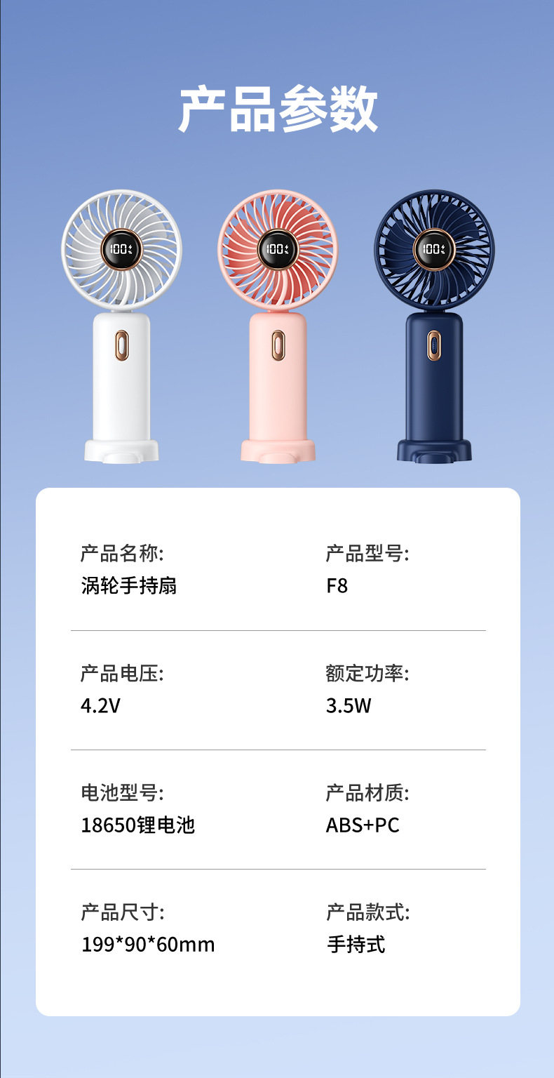 2024F8 휴대용 미니 고속 작은 팬 데스크탑 야외 휴대용 LED 디지털 디스플레이 USB 충전 작은 팬스토어 가기