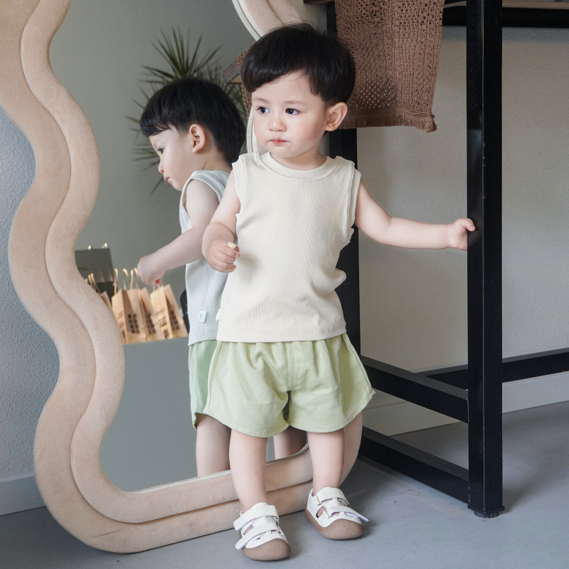 어린이 여름 조끼 톱 소년과 소녀 아이스 실크 솔리드 컬러 핏 민소매 셔츠 어린이 올매치 기본 얇은 기본 셔츠