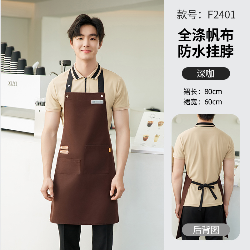 • [캔버스 발수] F2401 홀터넥 앞치마 다크 커피