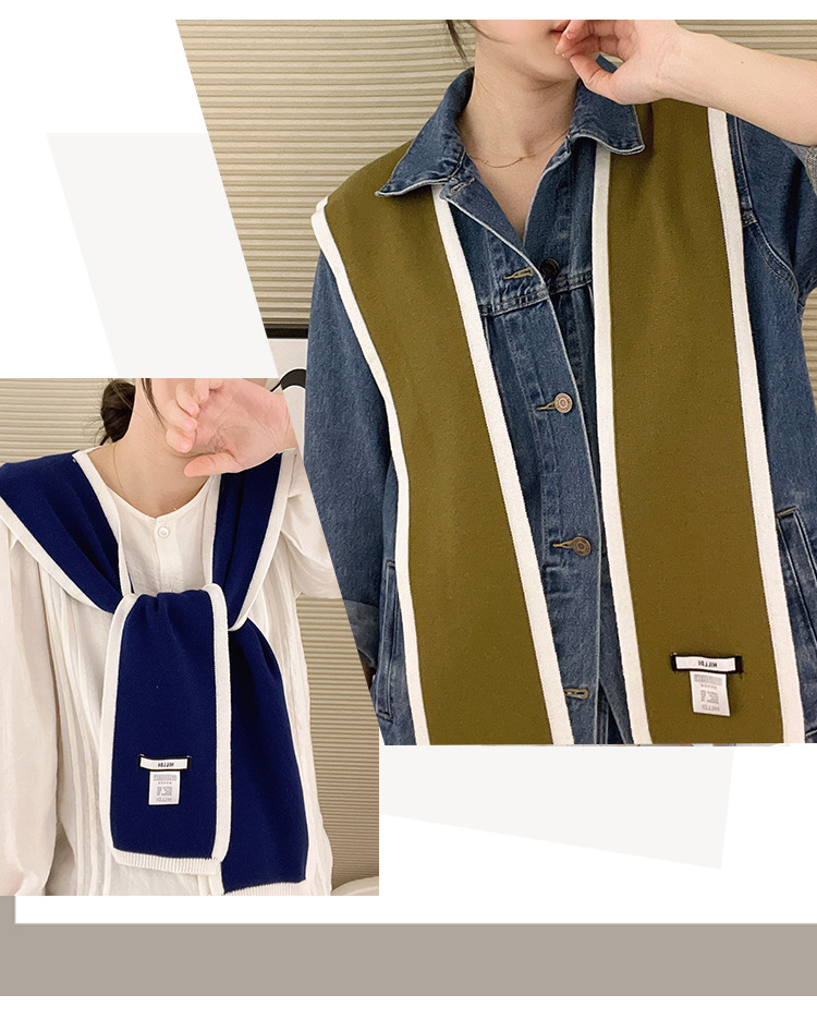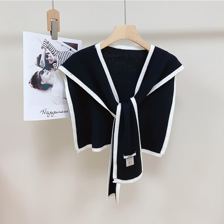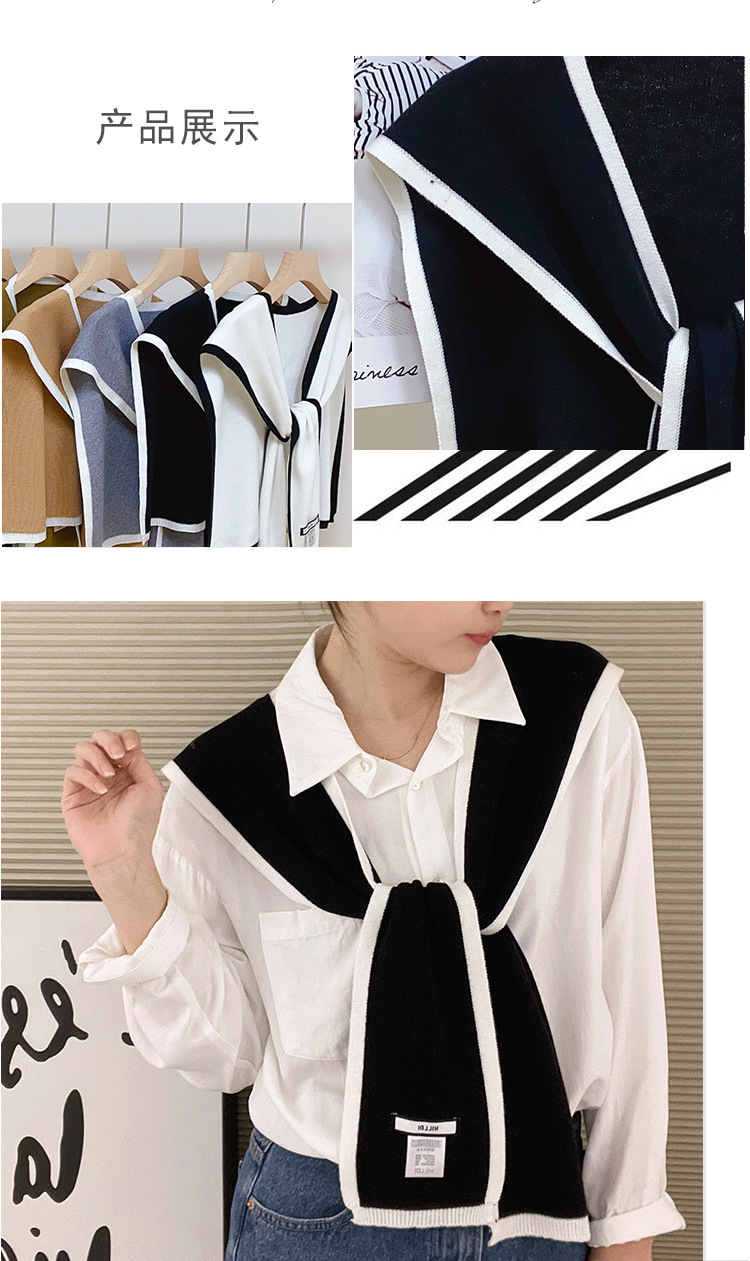 컬러 매칭 향기로운 스타일 흑백 봄 및 여름 니트 사이버 연예인 목도리 여성의 외부 선 스크린 에어컨 방 어깨 목 보호 거짓 칼라