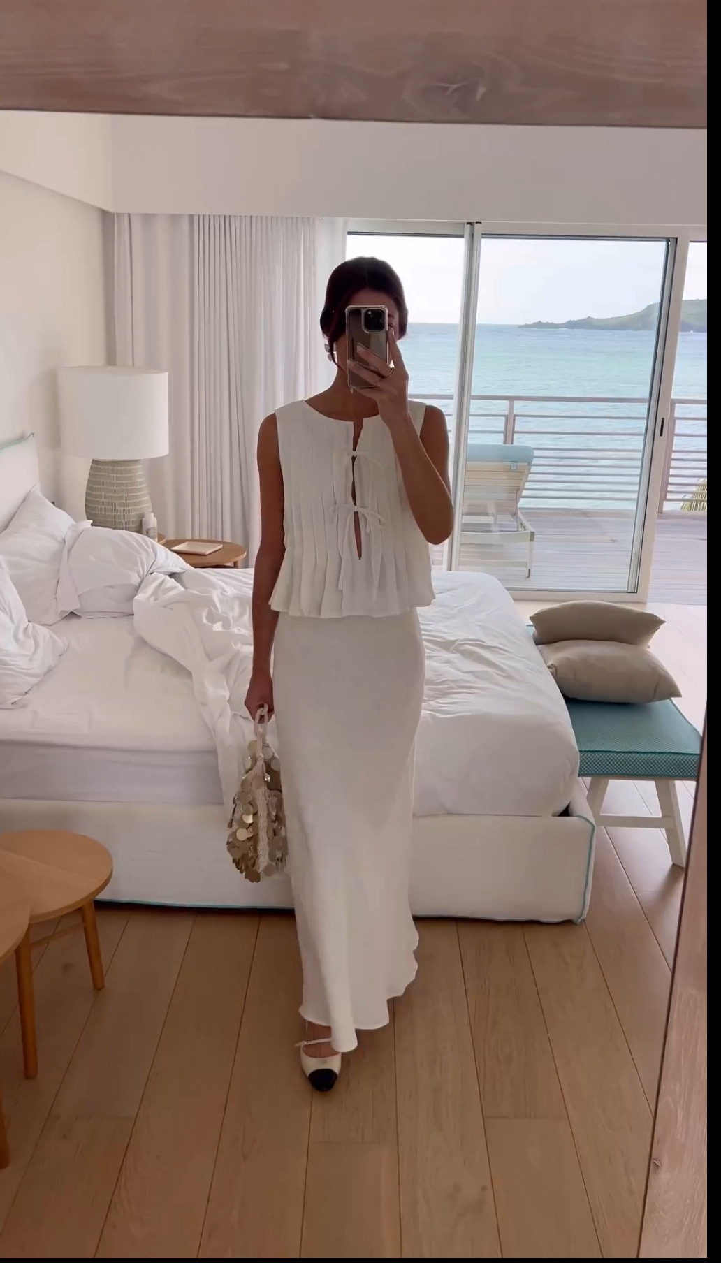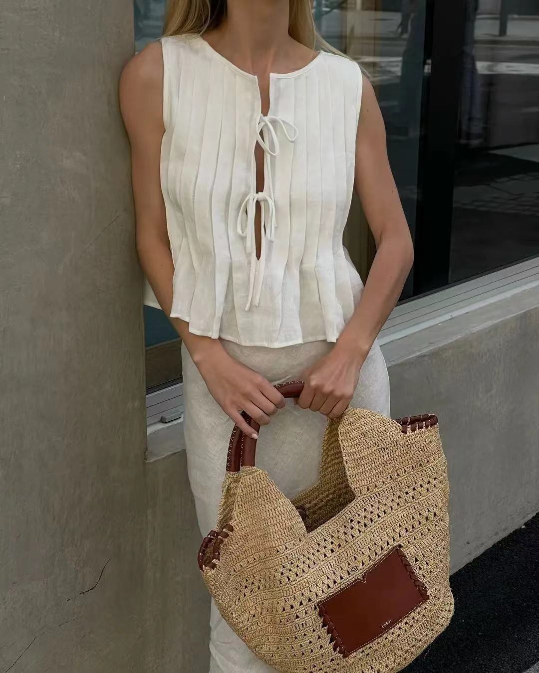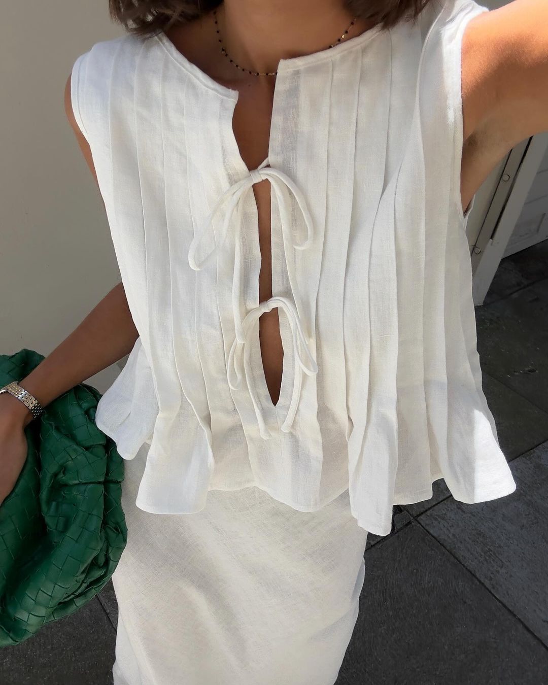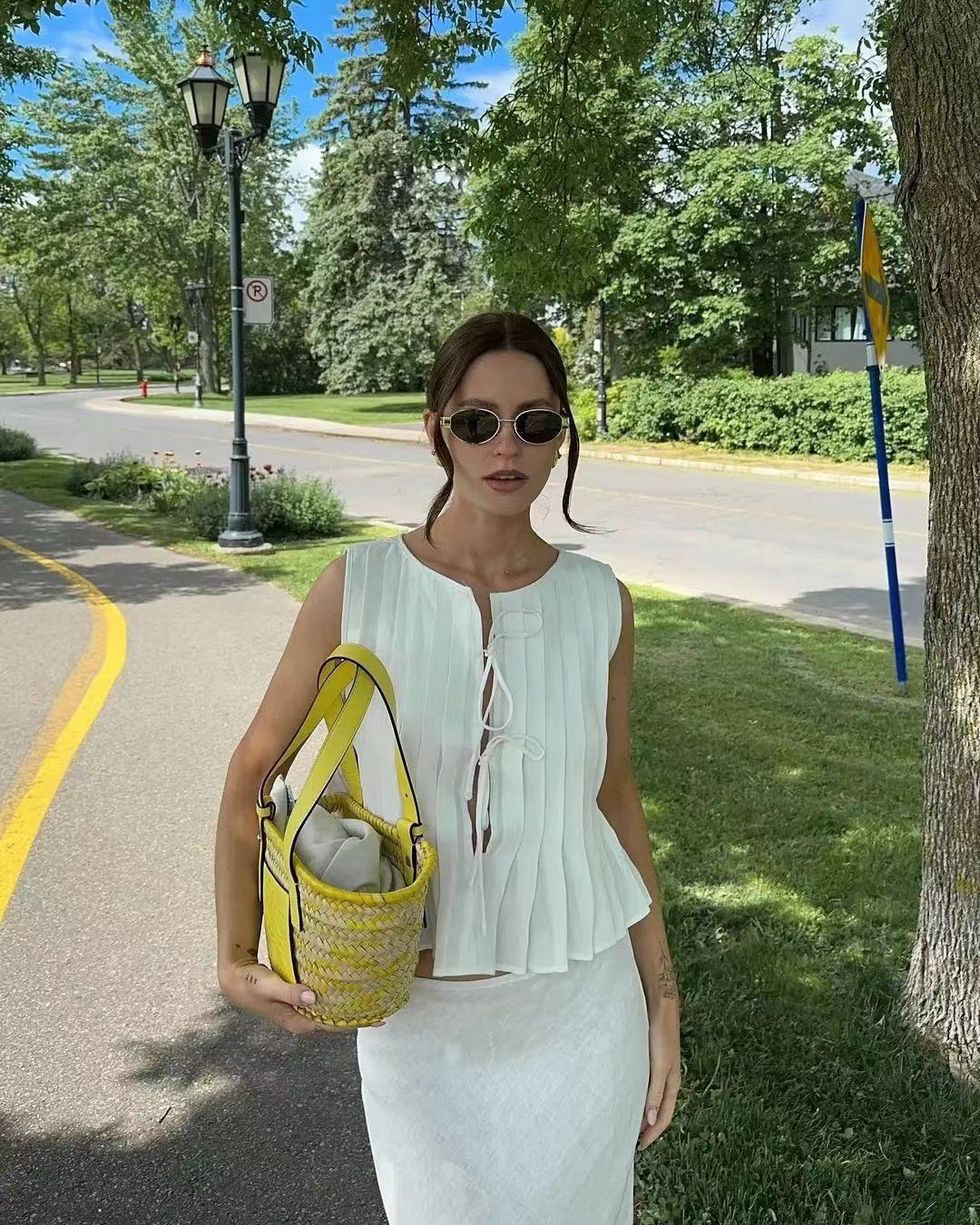 6가지 색상, 전 사이즈, 유럽 및 미국 국경 간 인기 통기성 면 및 린넨 주름 민소매 스트랩 여성용 셔츠, 하이 스트리트 롱 스커트스토어 가기