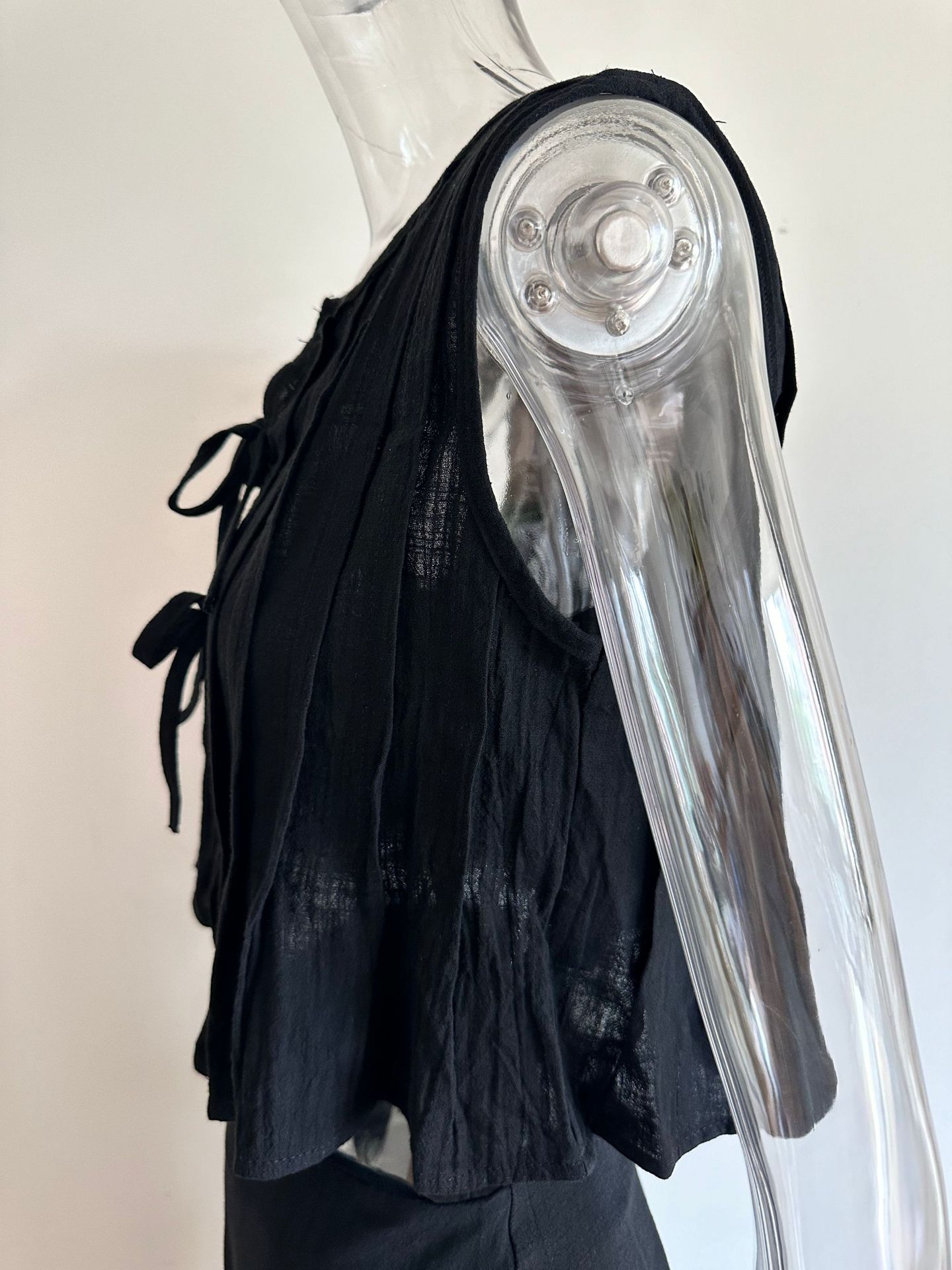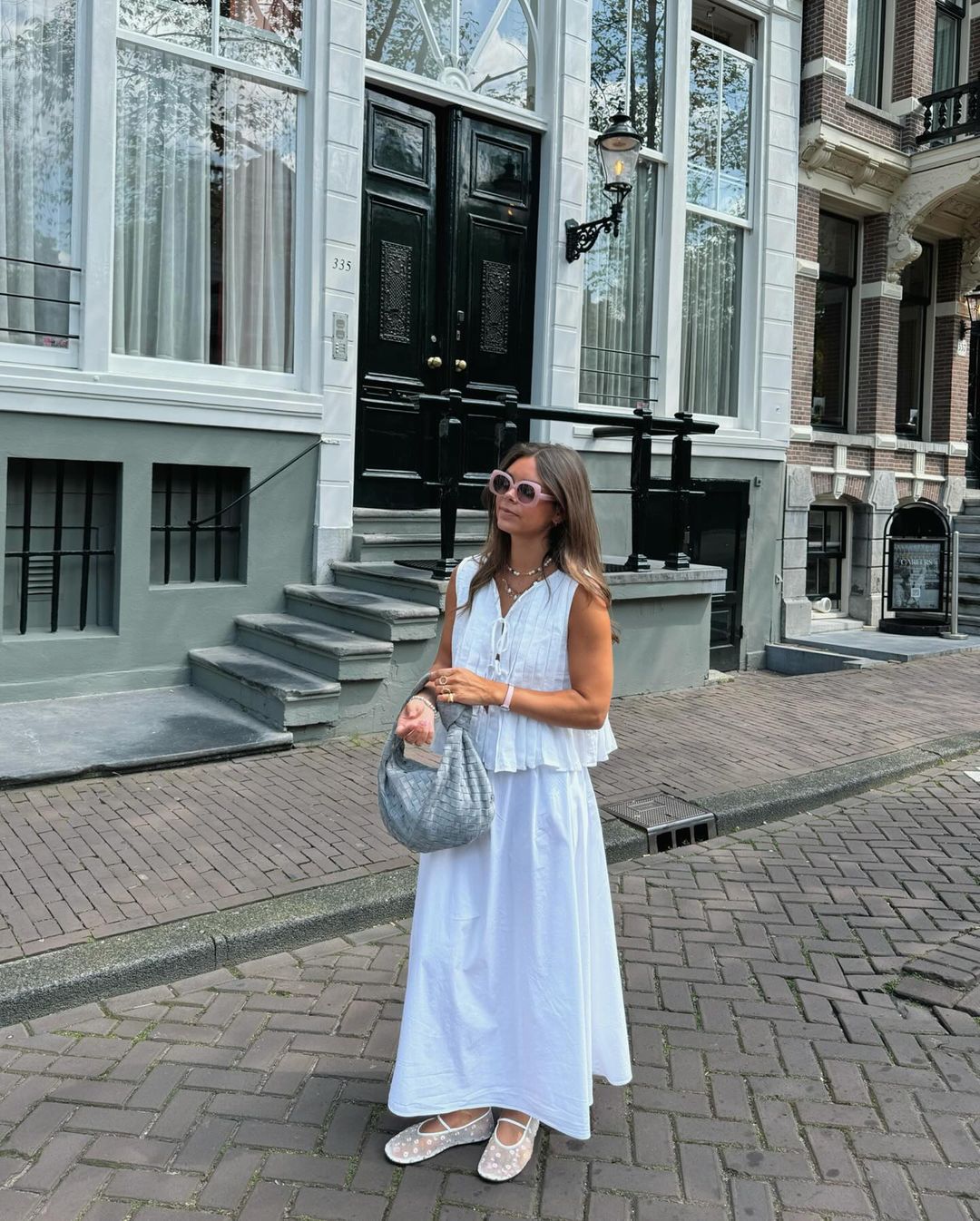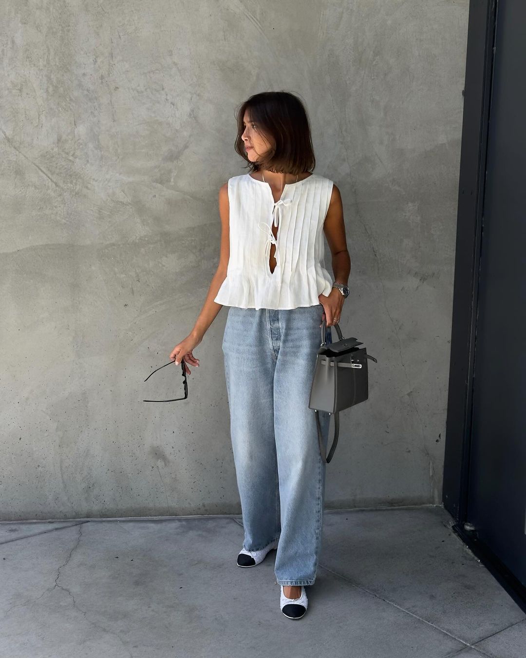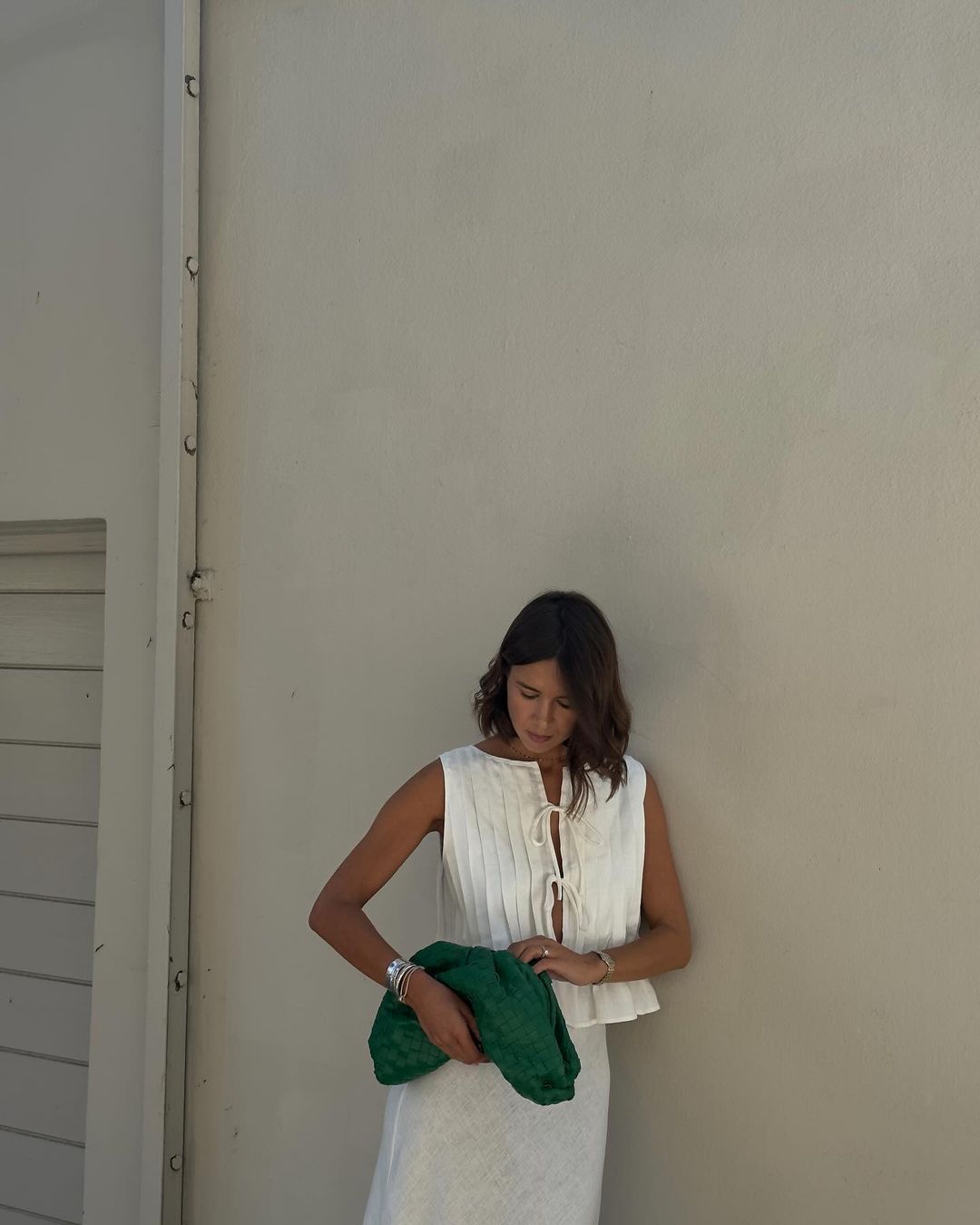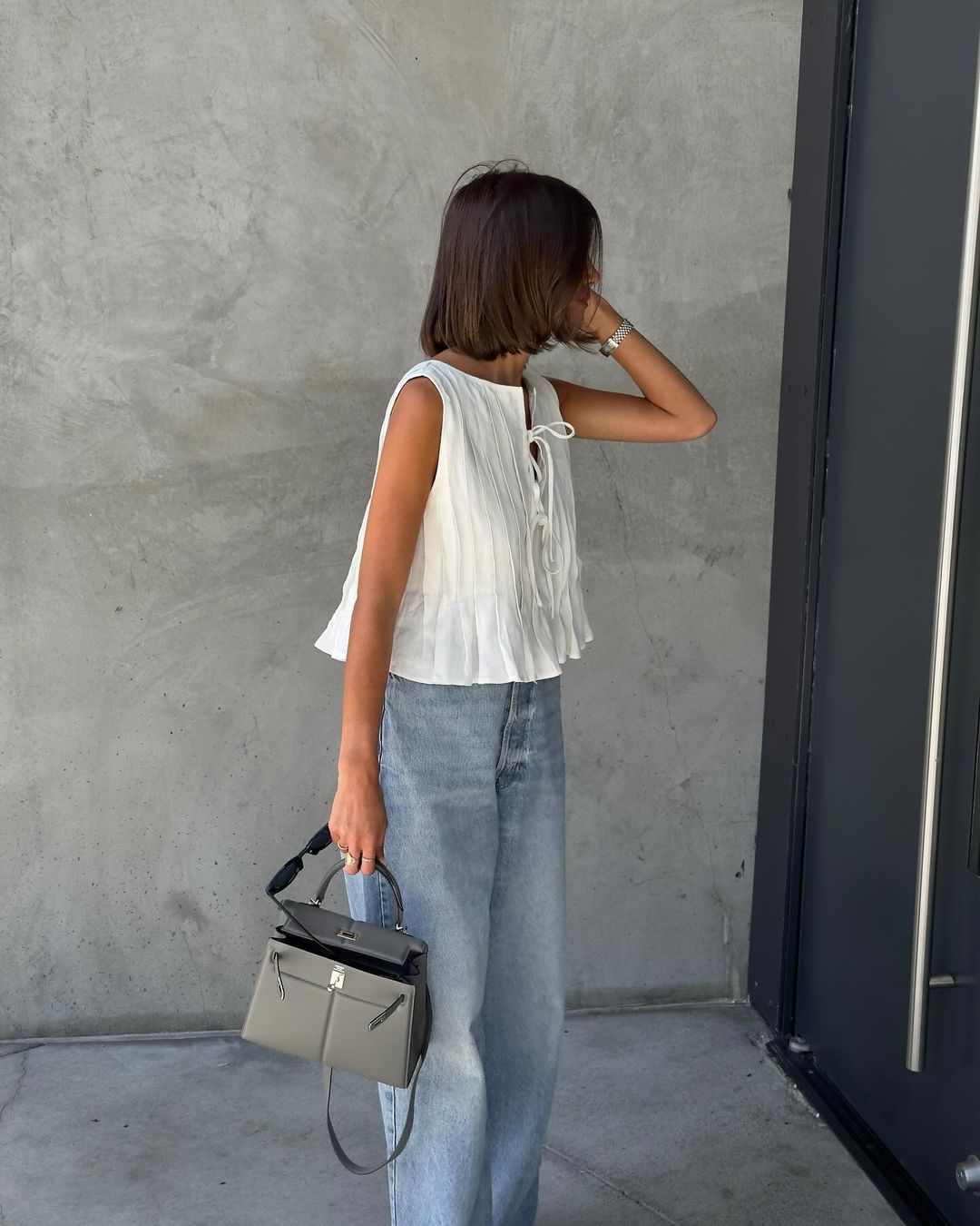 6가지 색상, 전 사이즈, 유럽 및 미국 국경 간 인기 통기성 면 및 린넨 주름 민소매 스트랩 여성용 셔츠, 하이 스트리트 롱 스커트스토어 가기