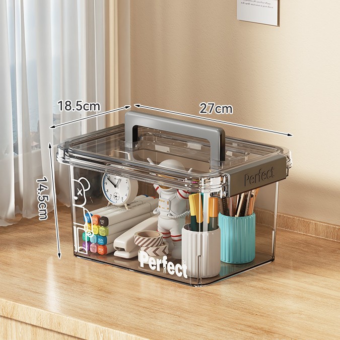 • 투명 그레이 - 소형 [길이 27*가로 18.5*높이 14.5cm] 펜홀더/스테이플러 수납 가능