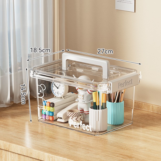 • 투명 - 소형 [길이 27*가로 18.5*높이 14.5cm] 펜홀더/스테이플러 등을 수납할 수 있습니다.