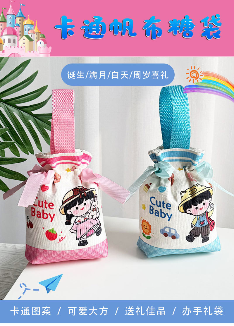 아기 사탕 가방, 만월 선물용 캔버스 사탕 가방, 어린이날 선물 가방, 만월 축하 사탕 가방