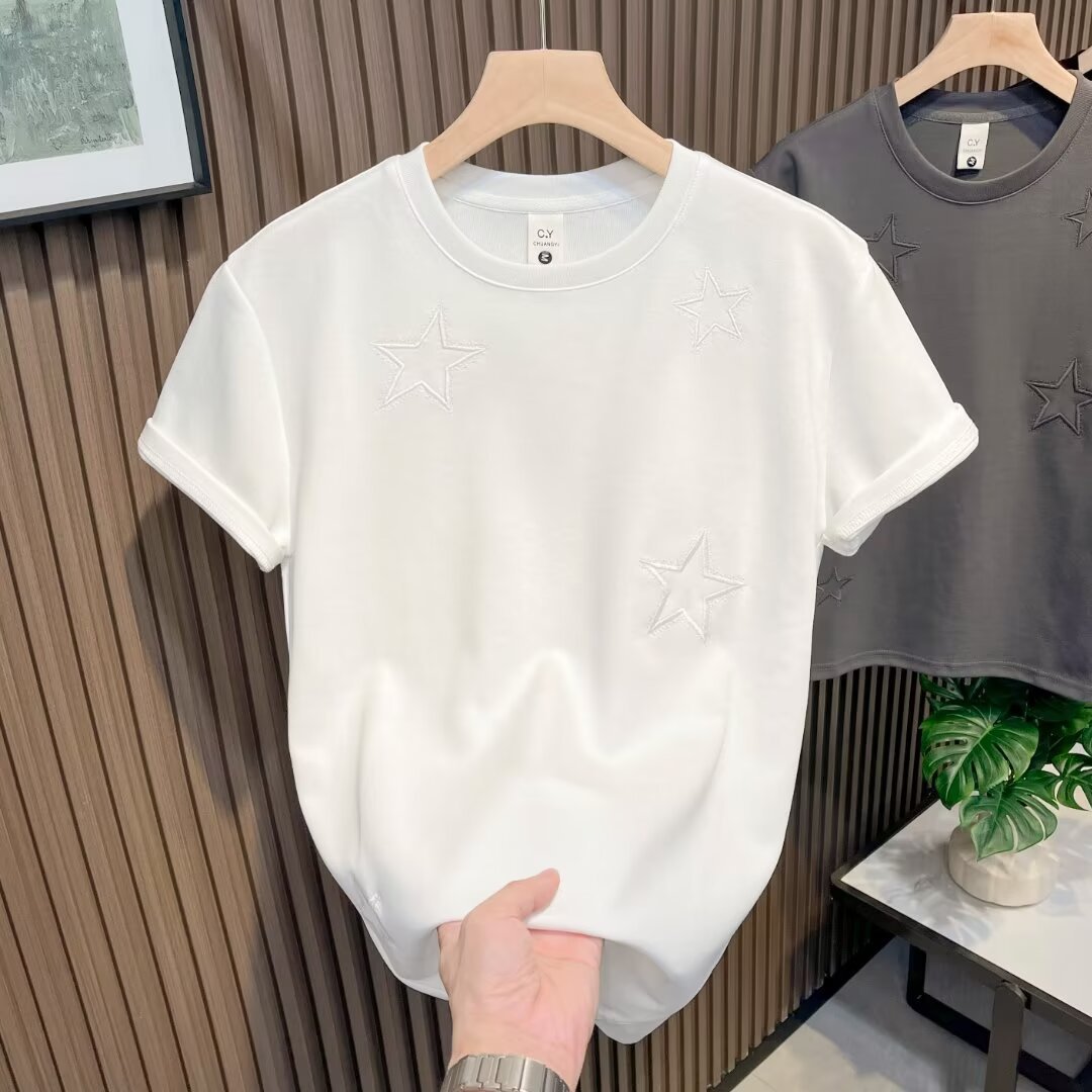 새로운 반팔 티셔츠 남성용 여름 한국식 트렌디 심플 반팔 탑 홍콩 스타일 루즈 캐주얼 트렌디 브랜드 티셔츠