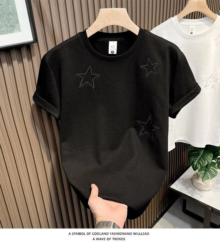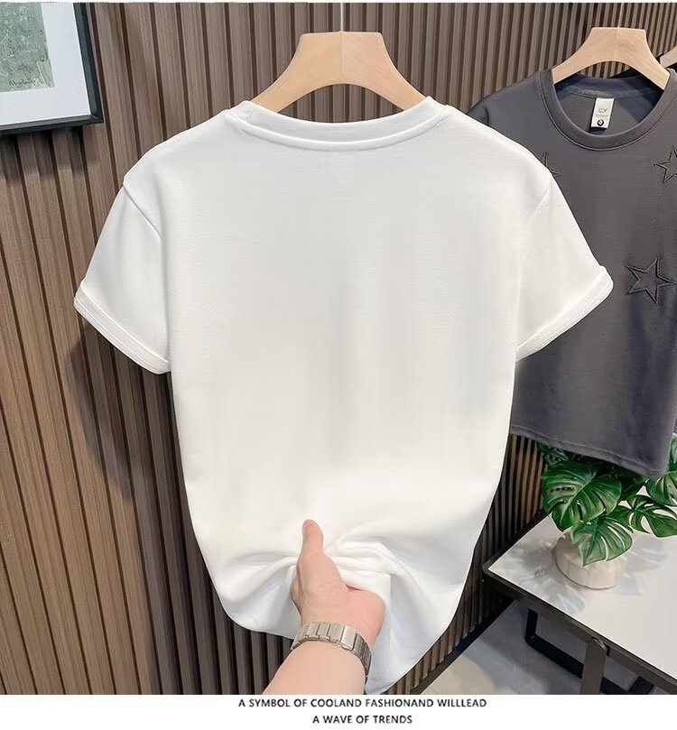 새로운 반팔 티셔츠 남성용 여름 한국식 트렌디 심플 반팔 탑 홍콩 스타일 루즈 캐주얼 트렌디 브랜드 티셔츠스토어 가기