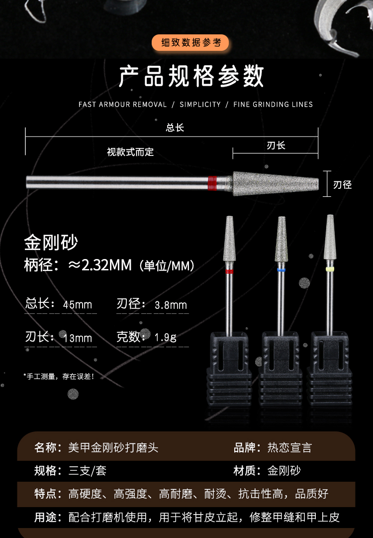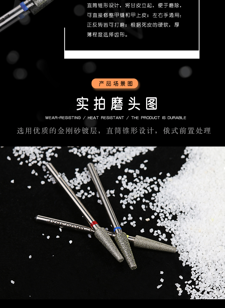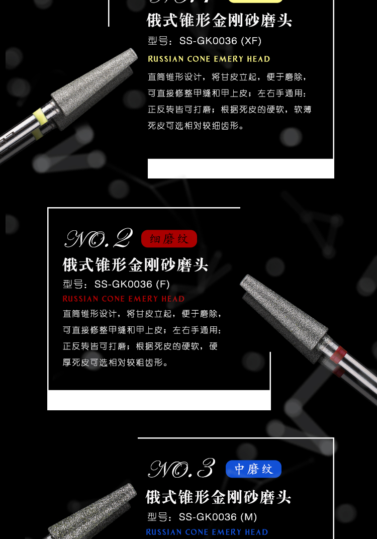 러시아 스타일의 전처리 네일 아트 도구는 죽은 피부를 3 대 1 네일 조각 연삭 헤드 원추형 연삭 헤드 연삭 기계 유니버설