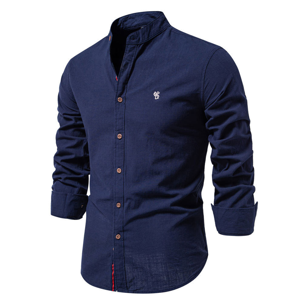 봄 여름 신상 트렌디 비즈니스 셔츠 남성용 면마 캐주얼 일본풍 패션 단색 긴팔 셔츠 남성 미국 사이즈스토어 가기
