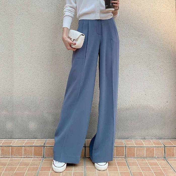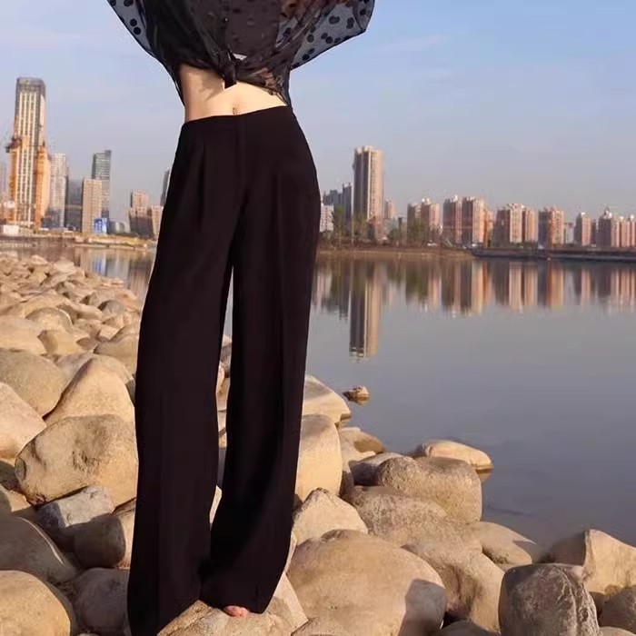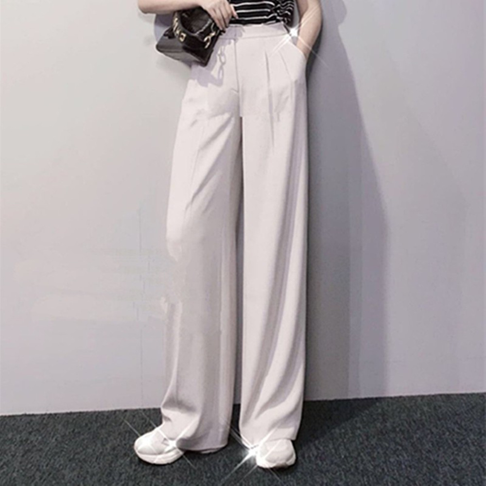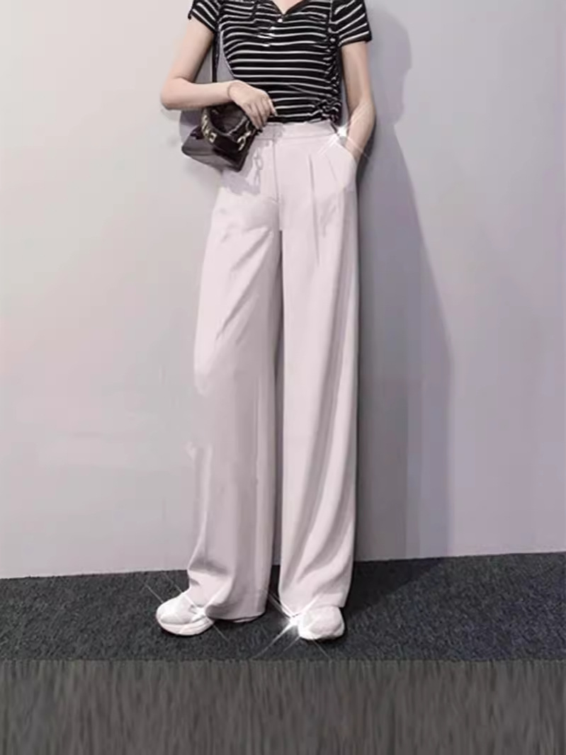 형제의 쇼핑몰 같은 스타일 여성 2024 년 여름 새로운 올 매치 슬림 핏 루즈 스트레이트 캐주얼 파리 와이드 레그 바지