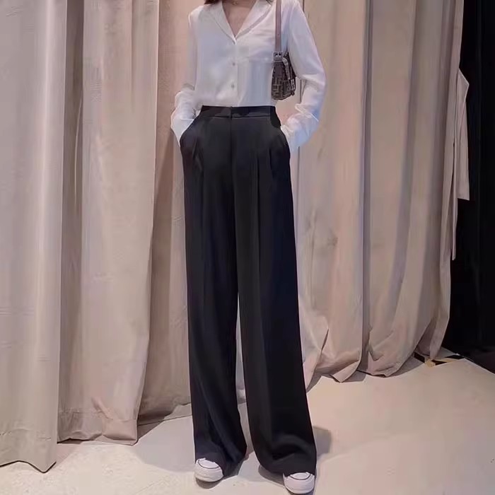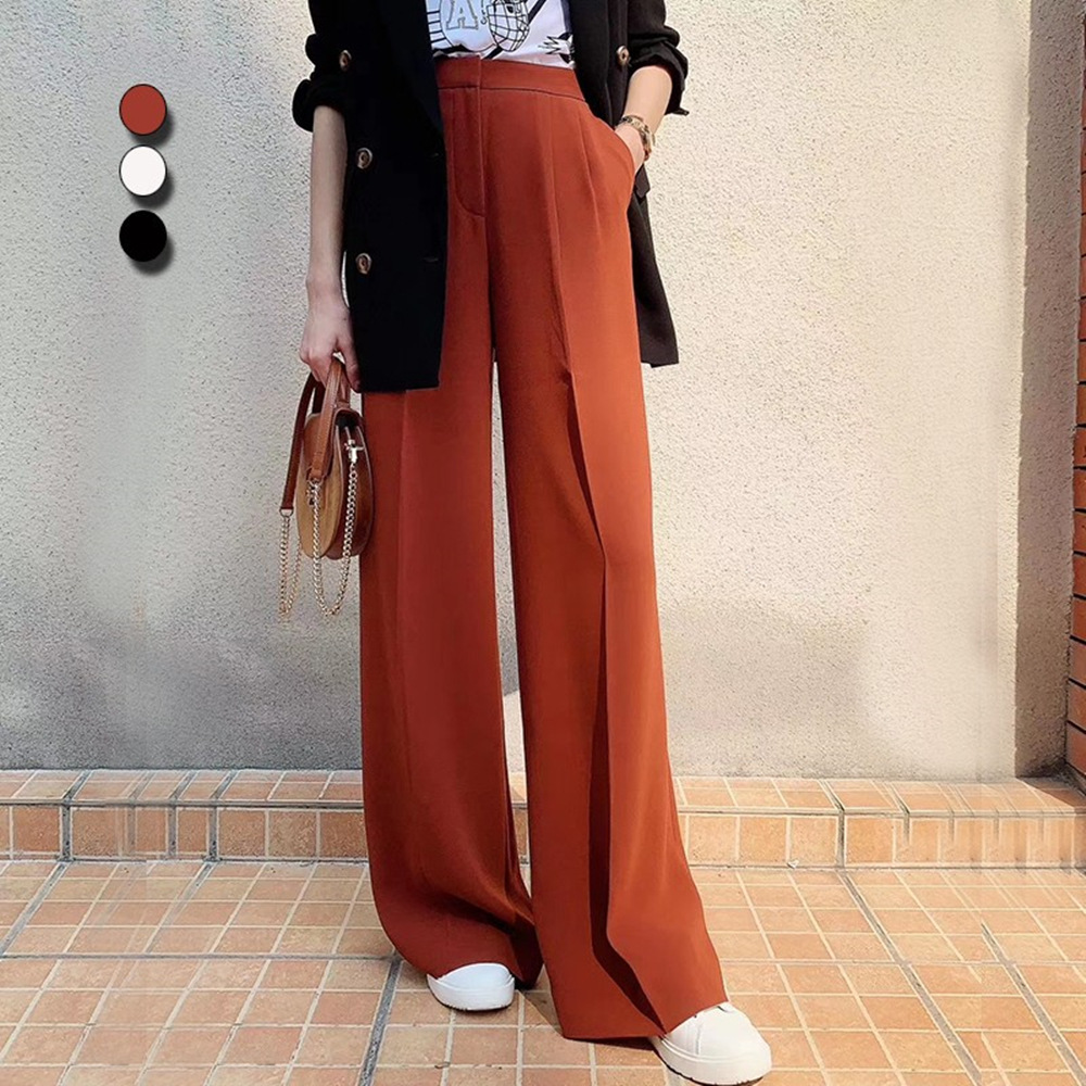 형제의 쇼핑몰 같은 스타일 여성 2024 년 여름 새로운 올 매치 슬림 핏 루즈 스트레이트 캐주얼 파리 와이드 레그 바지스토어 가기