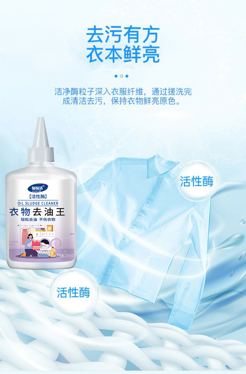 활성 효소 의류 오일 제거 킹 250ml 는 완고한 오일 얼룩 메이크업 얼룩 냄비 기름 의류 세제를 제거하기 위해 손을 해치지 않습니다.스토어 가기