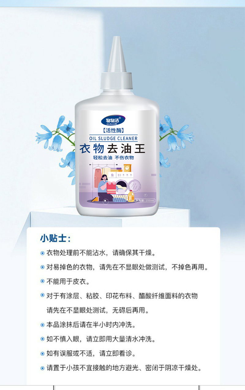 활성 효소 의류 오일 제거 킹 250ml 는 완고한 오일 얼룩 메이크업 얼룩 냄비 기름 의류 세제를 제거하기 위해 손을 해치지 않습니다.