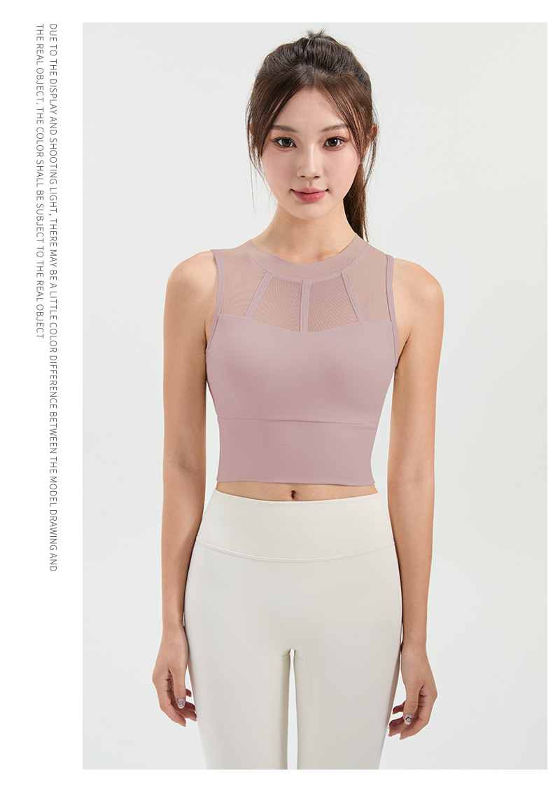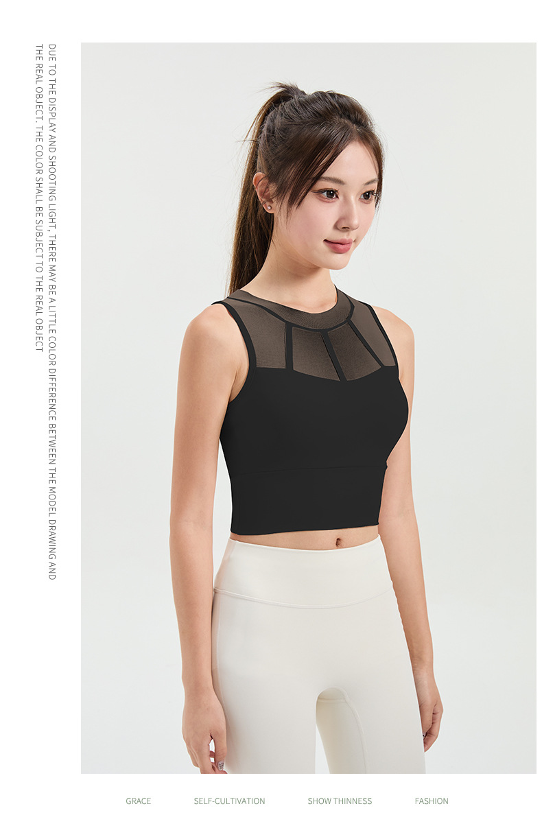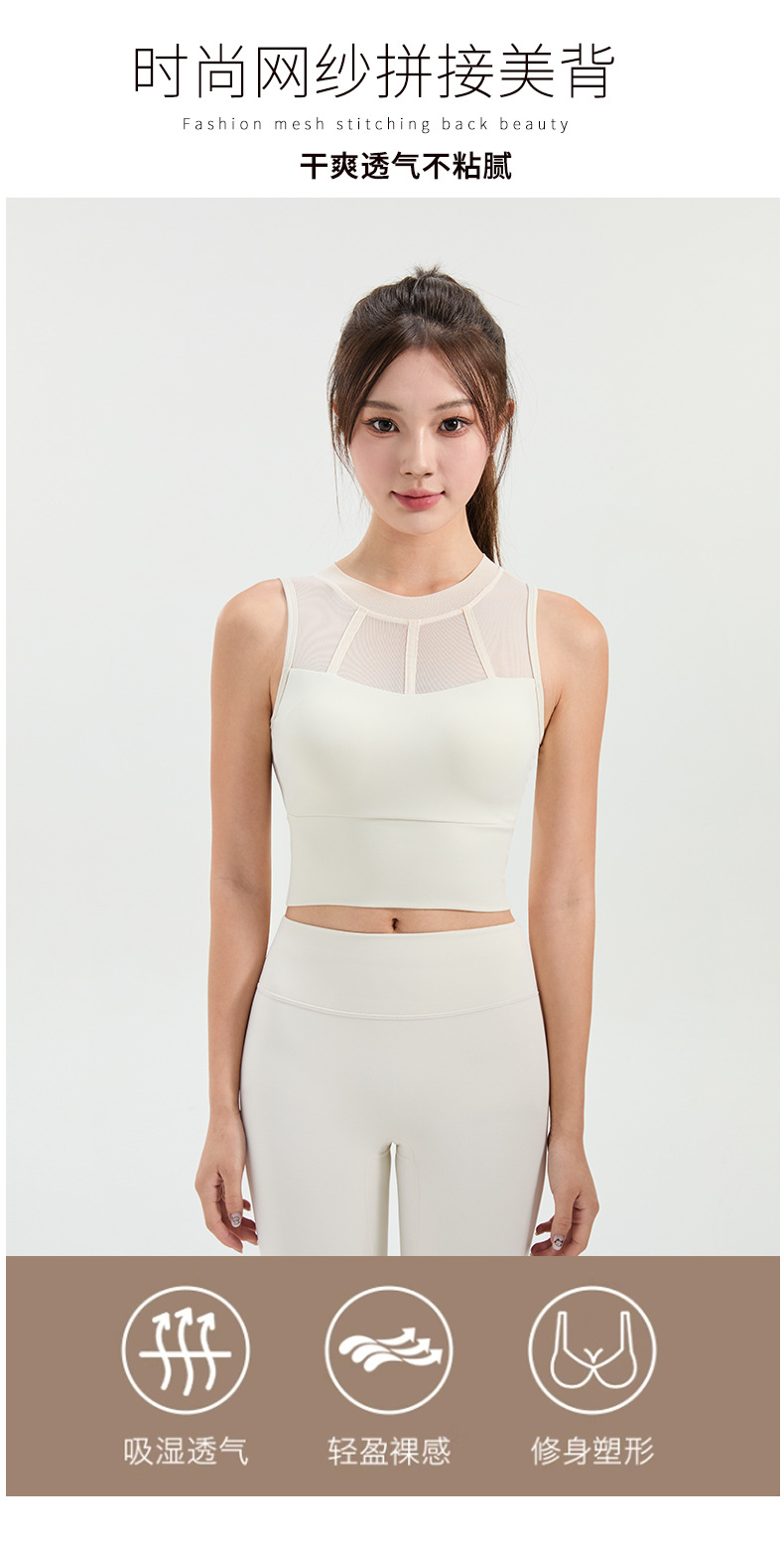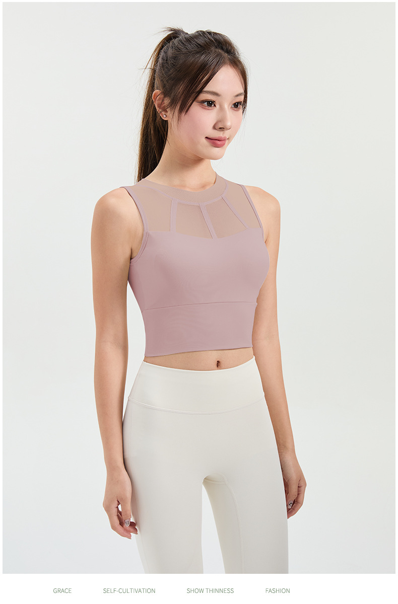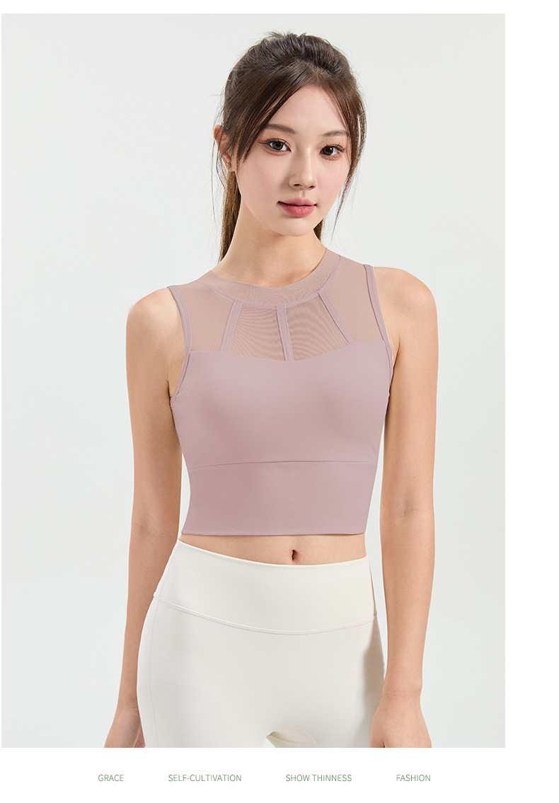 메쉬 스티칭 스포츠 속옷 여성의 원피스 충격 방지 러닝 뷰티 백 처짐 방지 요가 고급 센스 조끼