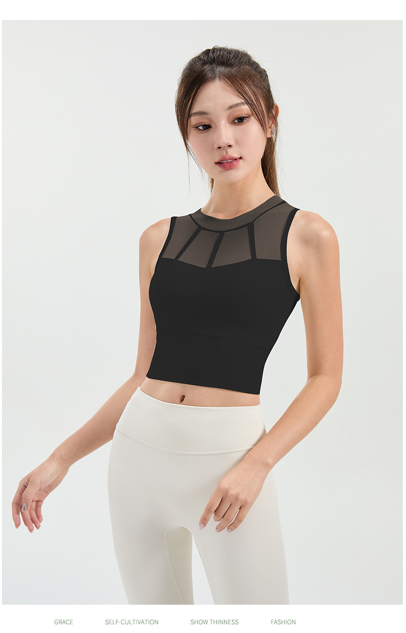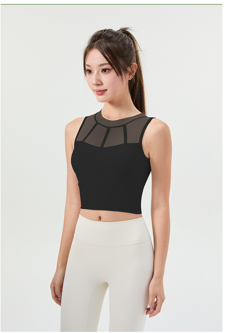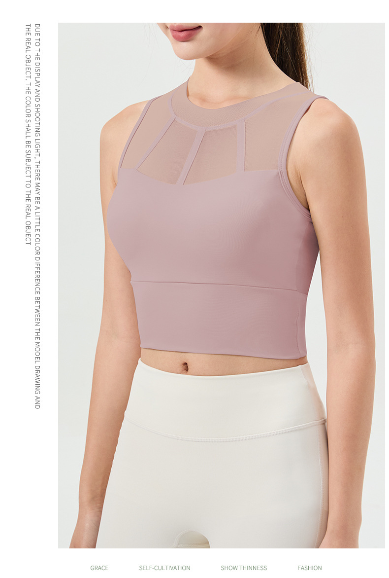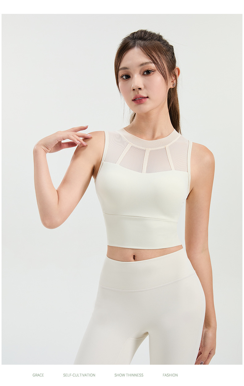 메쉬 스티칭 스포츠 속옷 여성의 원피스 충격 방지 러닝 뷰티 백 처짐 방지 요가 고급 센스 조끼
