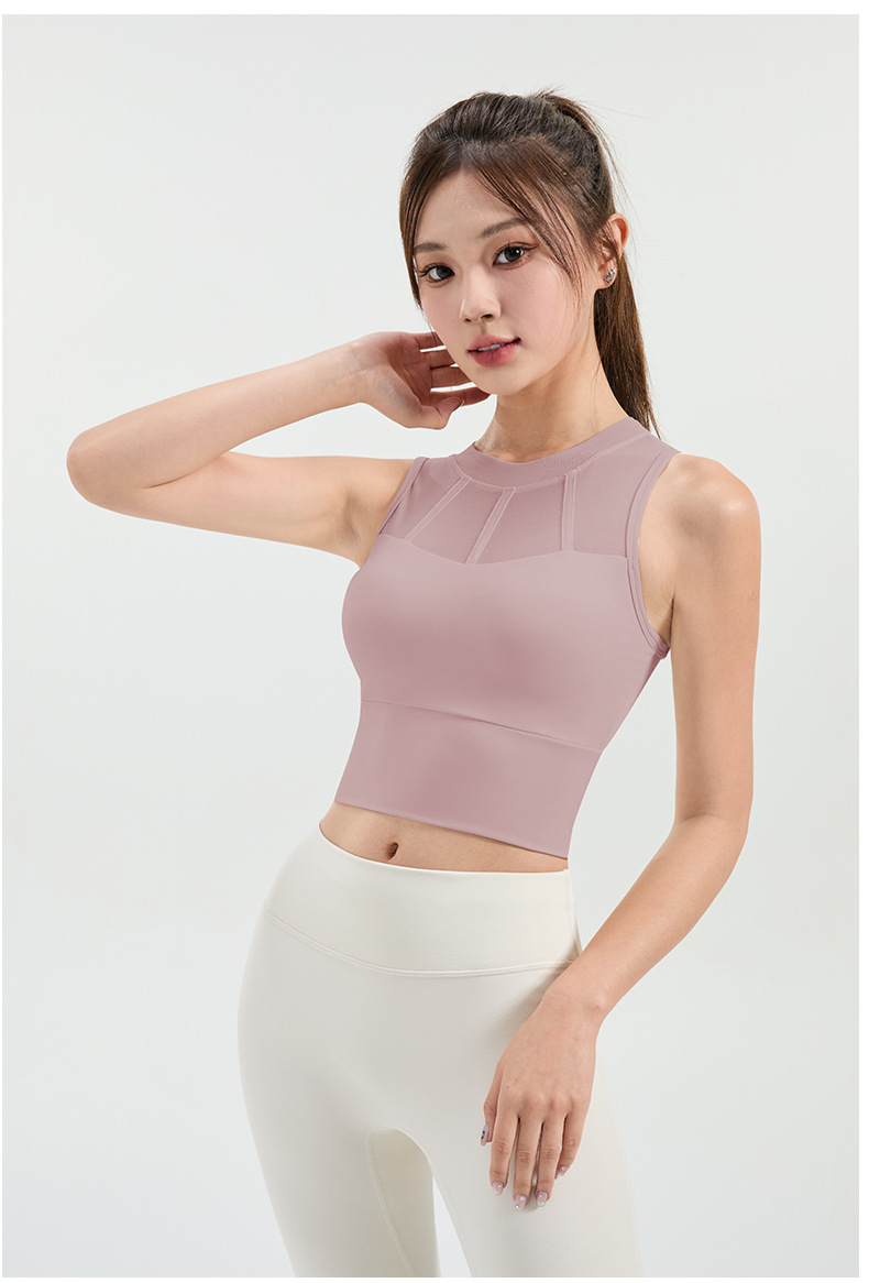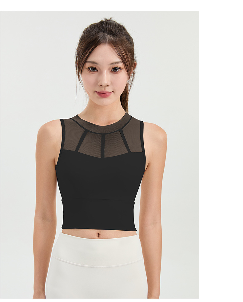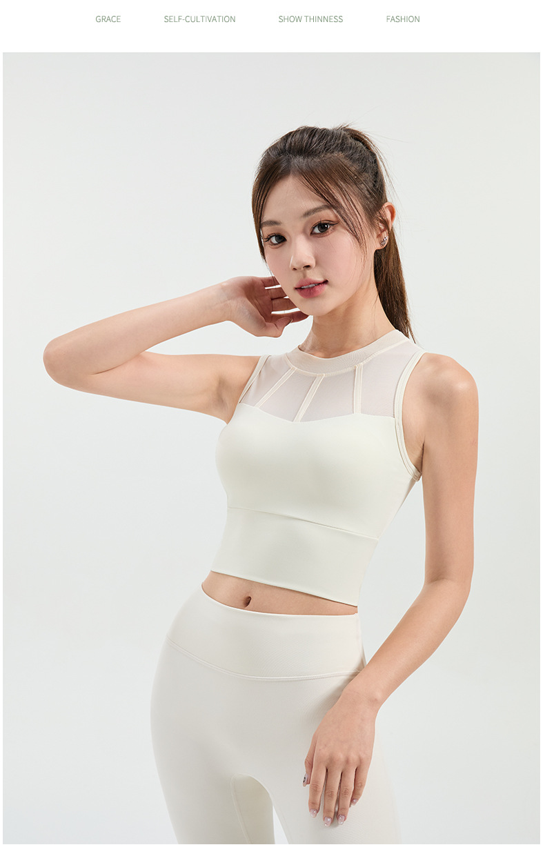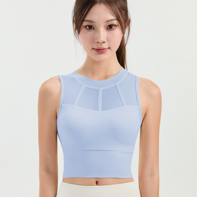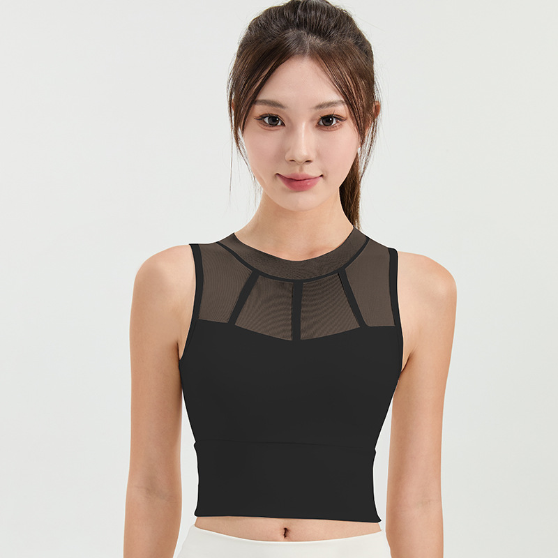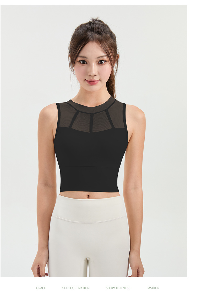 메쉬 스티칭 스포츠 속옷 여성의 원피스 충격 방지 러닝 뷰티 백 처짐 방지 요가 고급 센스 조끼