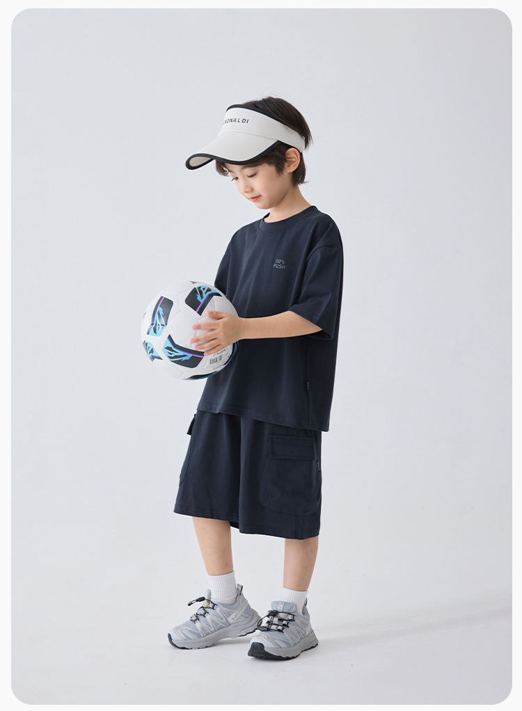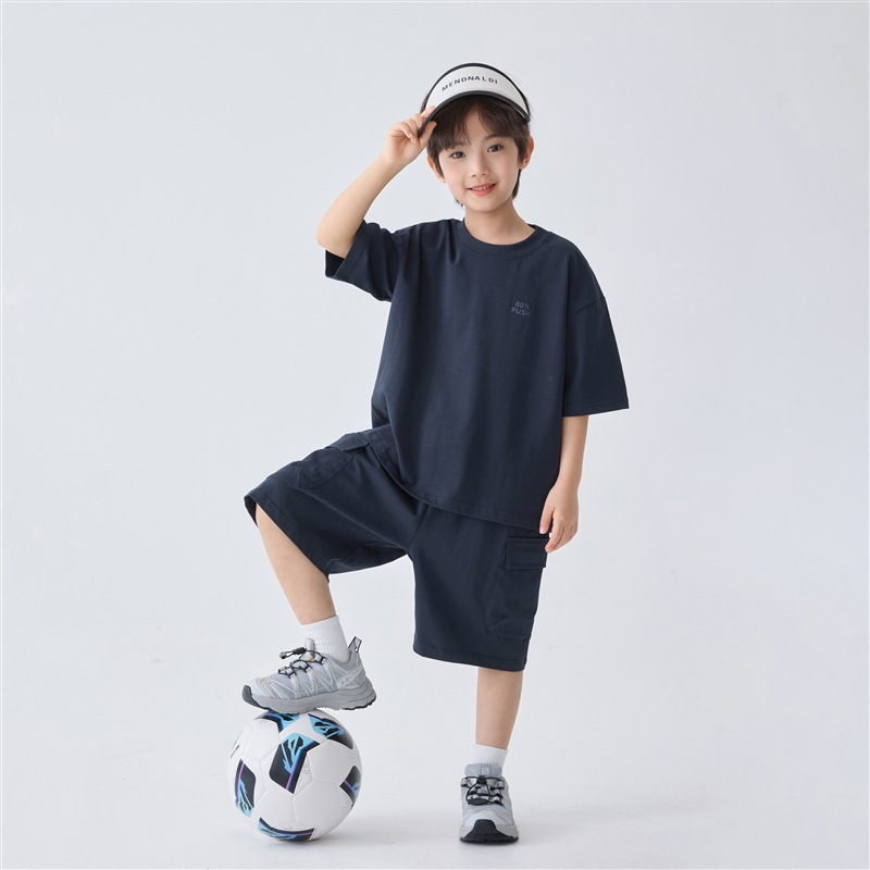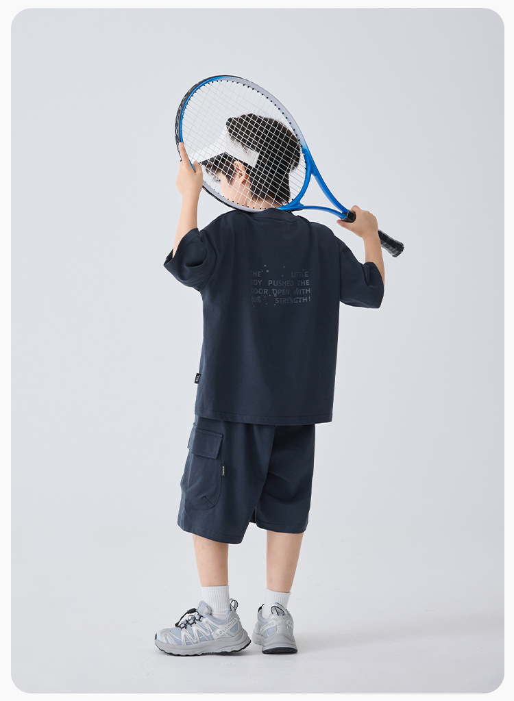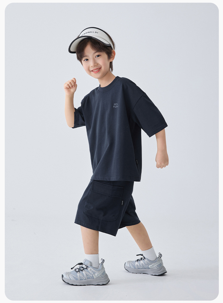 아동용 남아용 순면 캐주얼 아메리칸 스타일 루즈핏 얇은 반팔 티셔츠 반바지 세트 여름 투피스 트렌디 세트스토어 가기