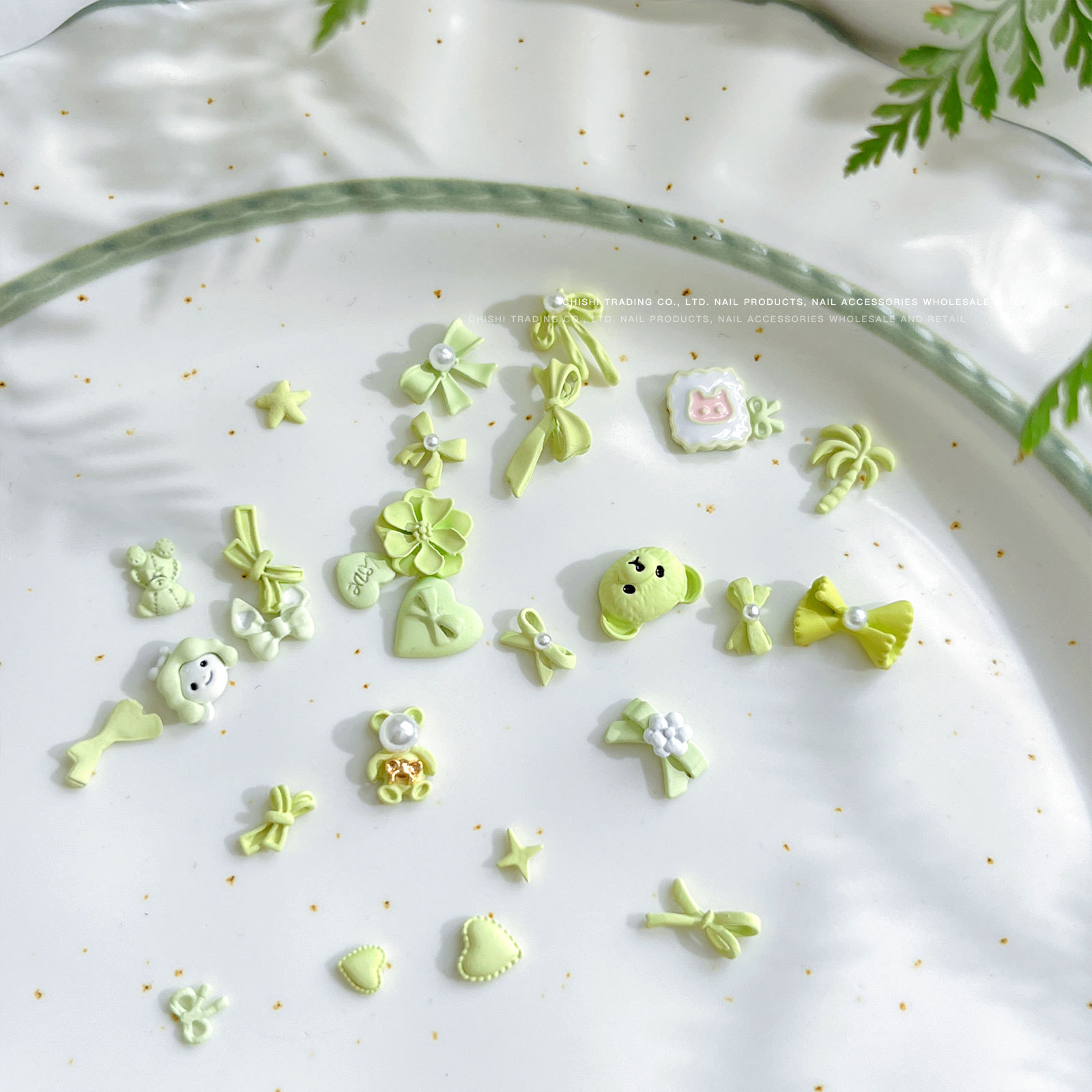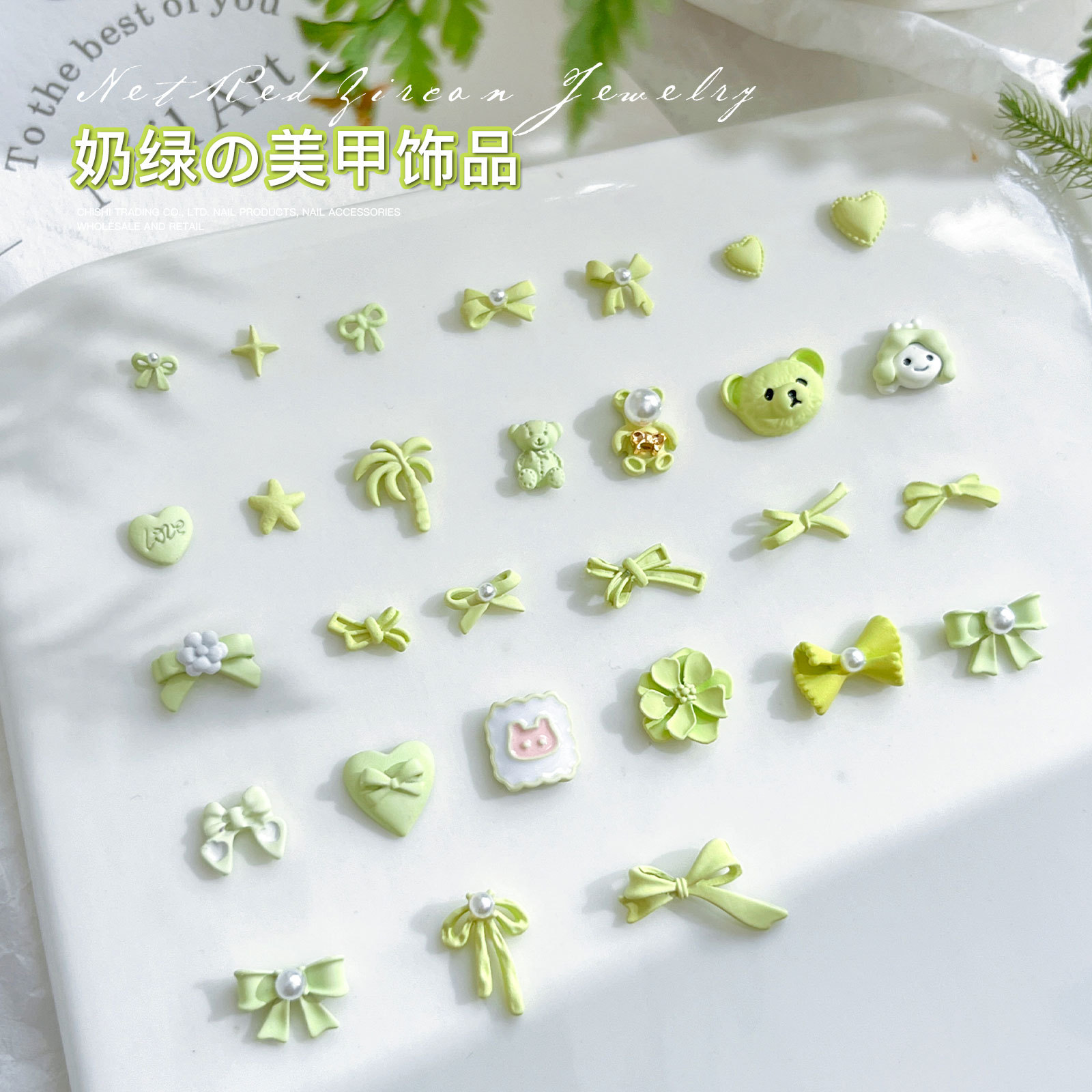 그물 빨간색 작은 신선한 우유 녹색 네일 쥬얼리 여름 귀여운 미니 활 장미 진주 네일 드릴 도매스토어 가기