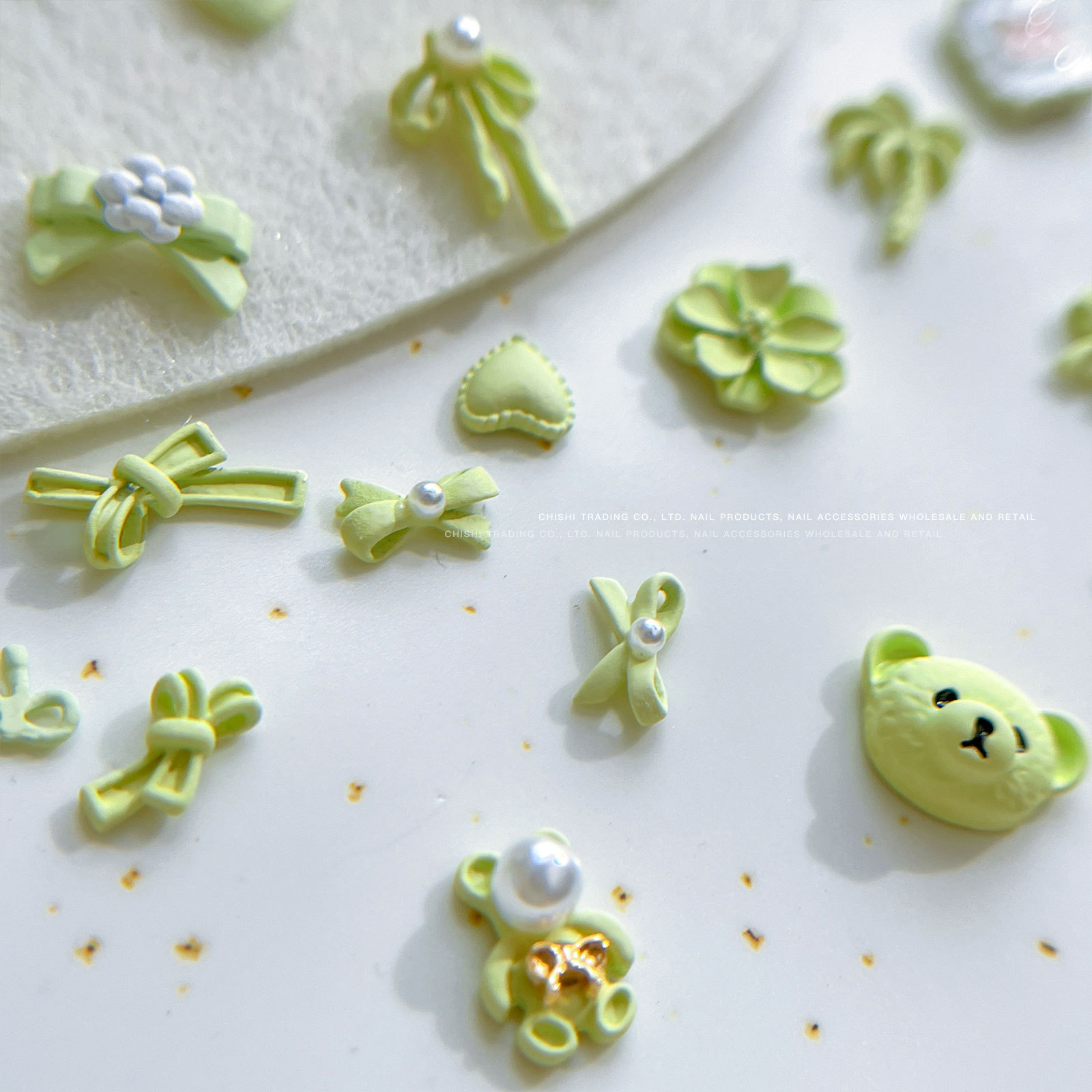 그물 빨간색 작은 신선한 우유 녹색 네일 쥬얼리 여름 귀여운 미니 활 장미 진주 네일 드릴 도매