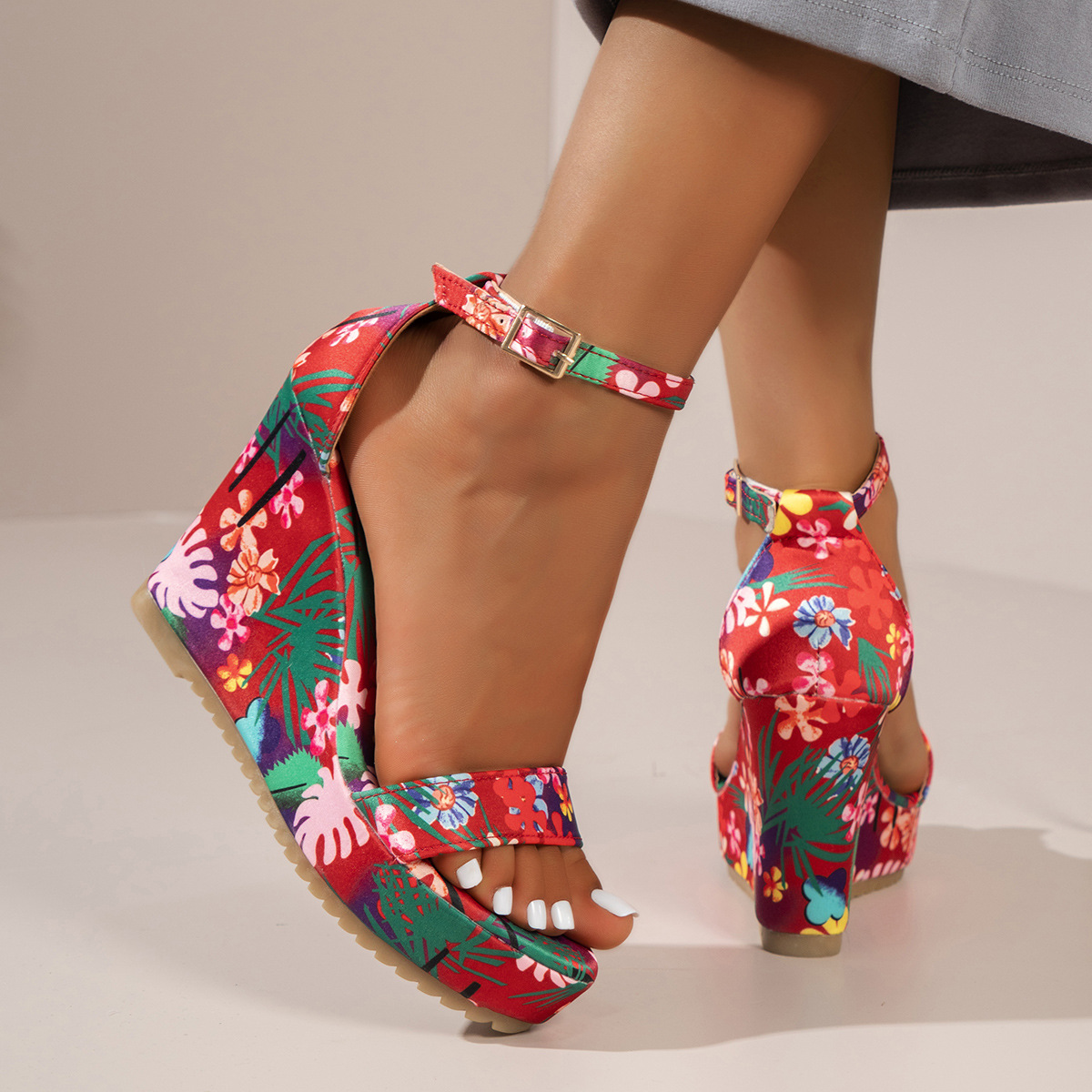국경 간 독립 역 플러스 사이즈 샌들 여성 2024 년 여름 새로운 민족 스타일 샌들 웨지 Fishmouth 버클스토어 가기