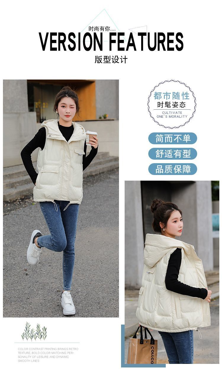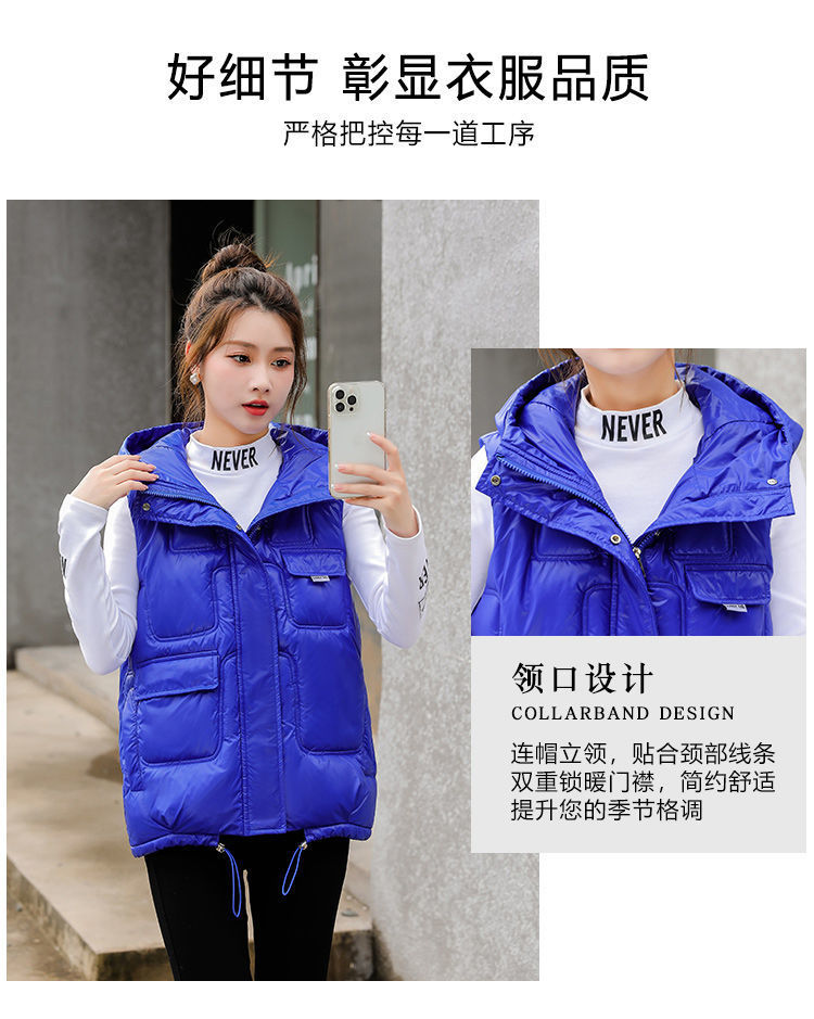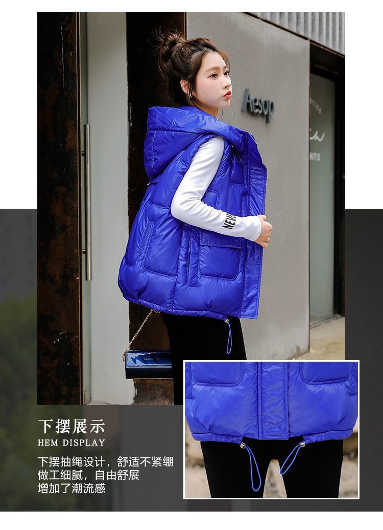 G 한국판 노워시 광택 다운 코튼 조끼 여성용 2024 겨울 두꺼운 후드 숏 조끼 외투스토어 가기