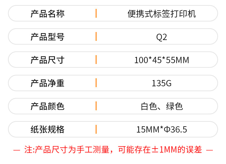 델리 Q2 휴대용 라벨 2 차원 코드 표현 단일 열 인쇄 블루투스 연결 비 건조 라벨 프린터