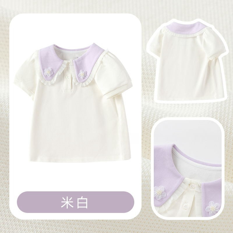 2024 새로운 여름 티셔츠 아기 아동복 어린이 통관 할인 소녀 반팔 바닥 셔츠 올 매치 탑스토어 가기