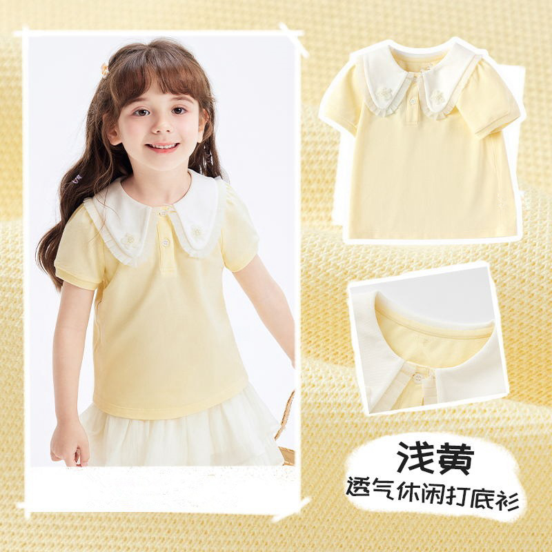 2024 새로운 여름 티셔츠 아기 아동복 어린이 통관 할인 소녀 반팔 바닥 셔츠 올 매치 탑