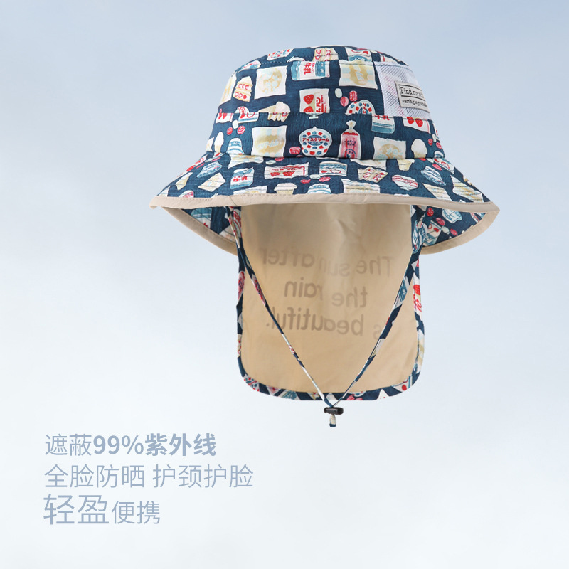 어린이 자외선 차단제 모자 여름 새로운 만화 차양 챙이 아기 모자 해변 어부 모자 도매스토어 가기