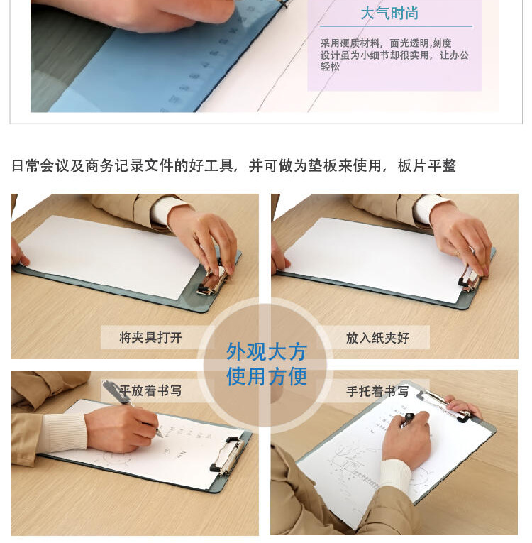 델리 9256 투명 필기 보드 클립 A4 폴더 학생 필기 패드 테스트 용지 부목 사무실 파일 폴더