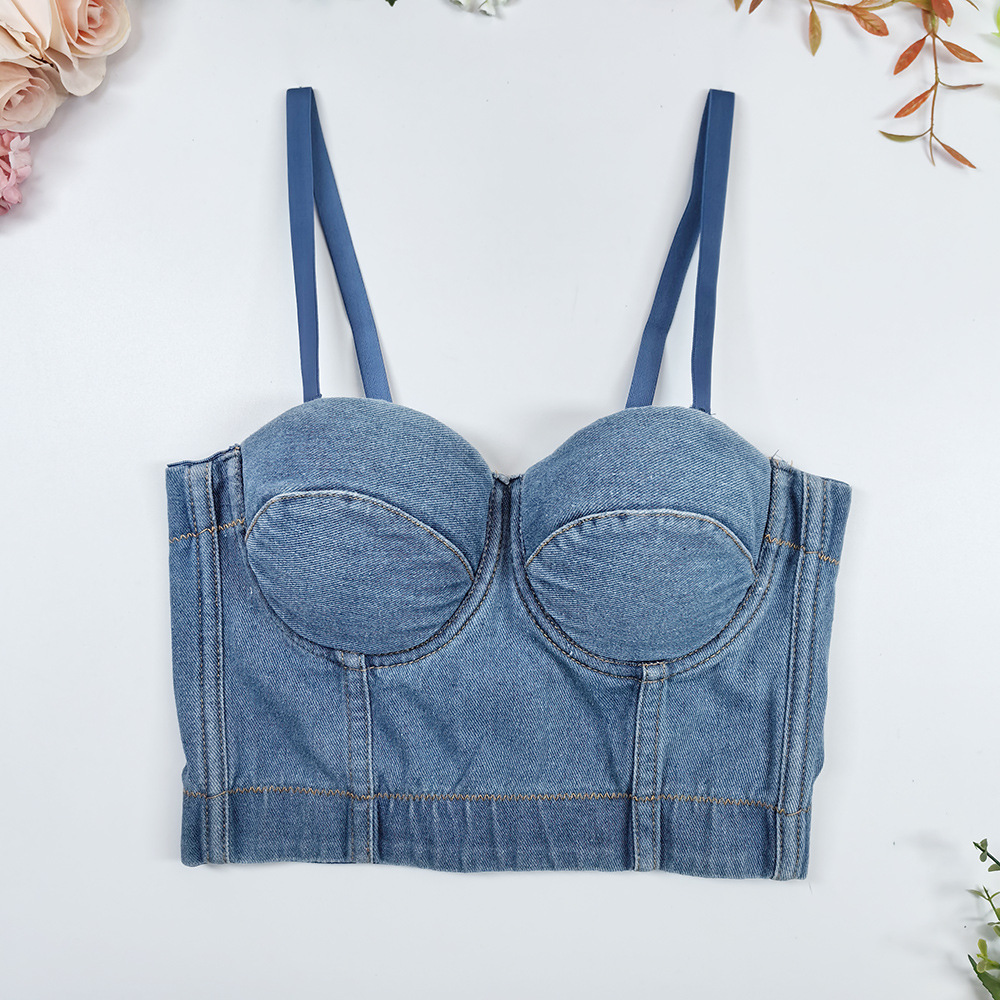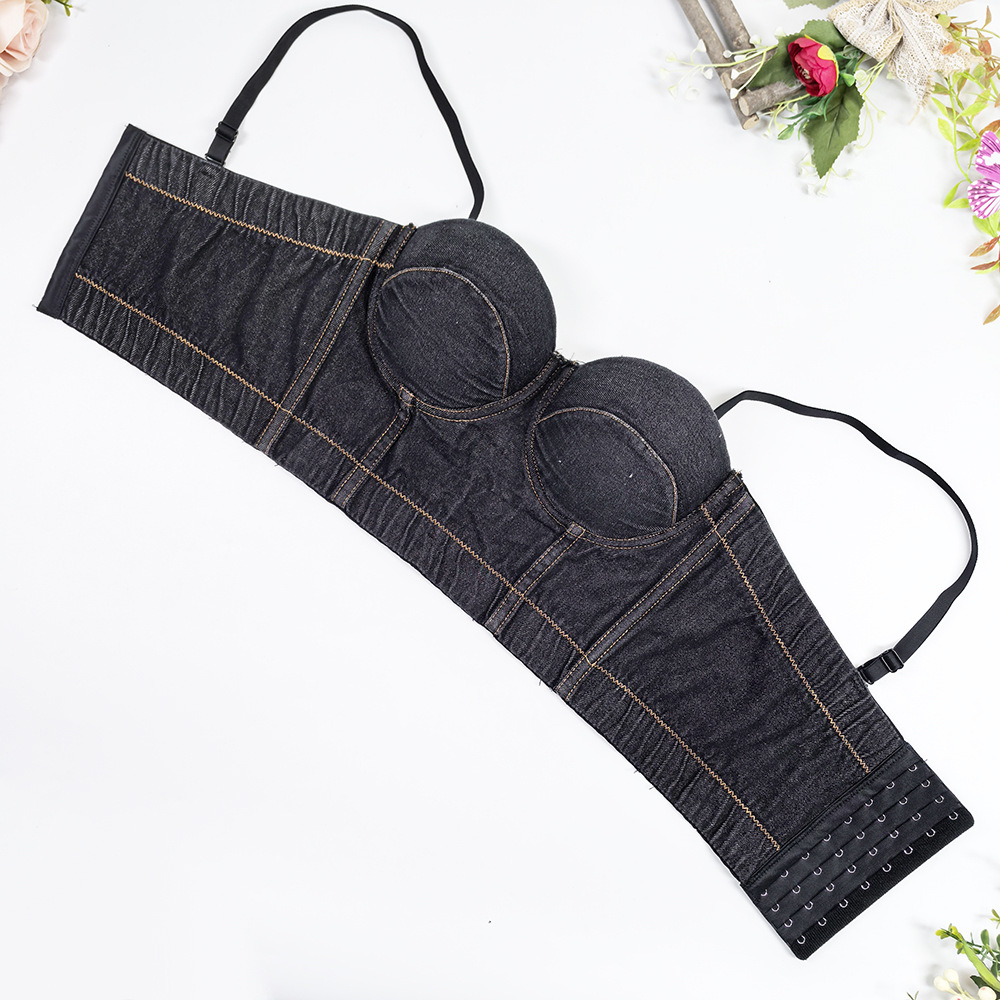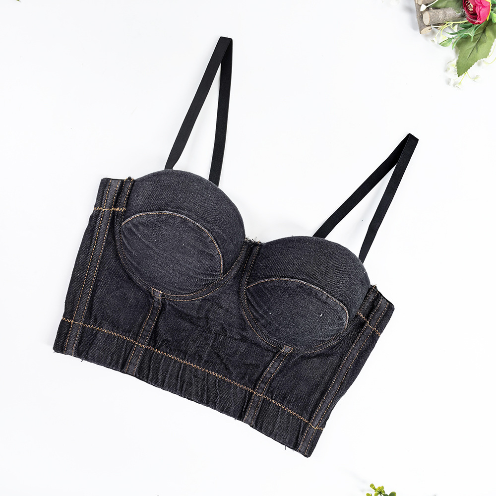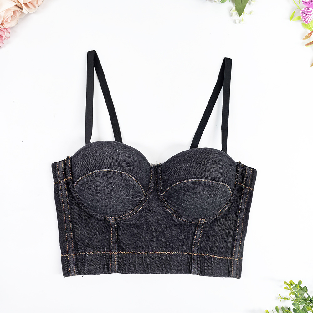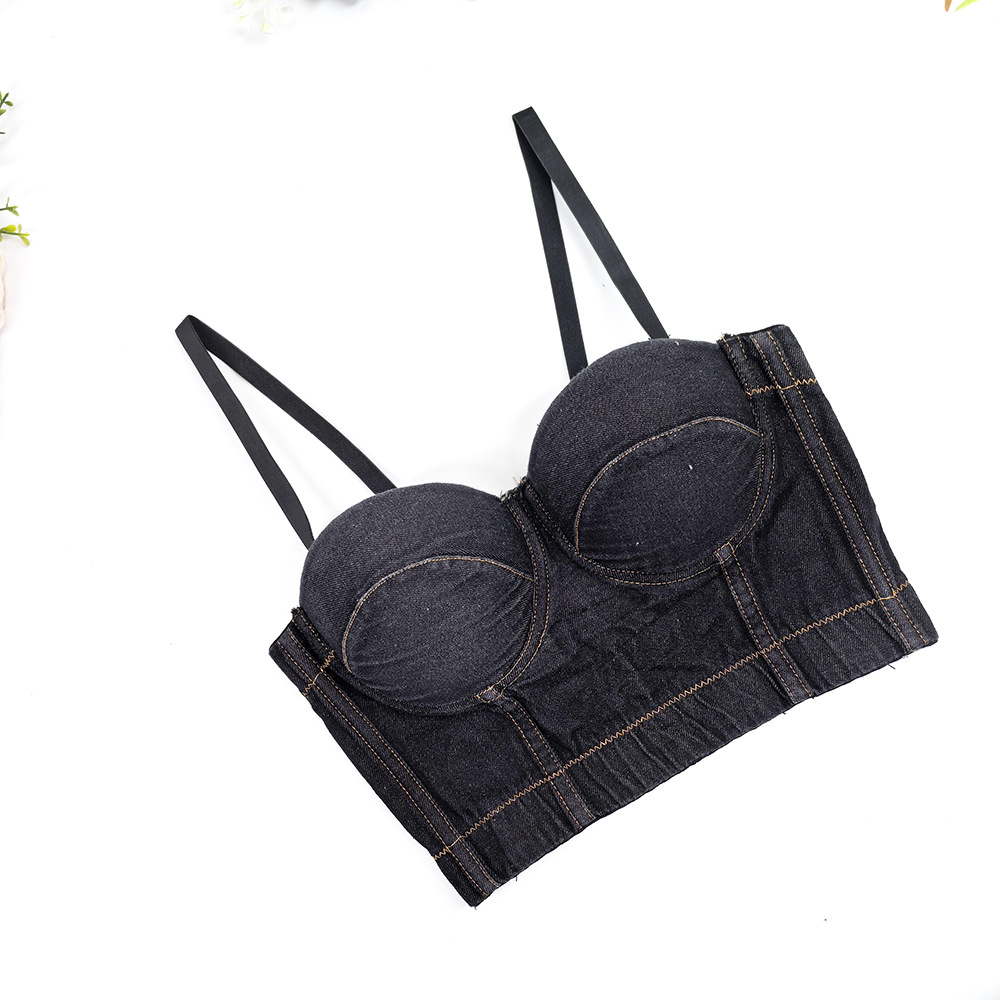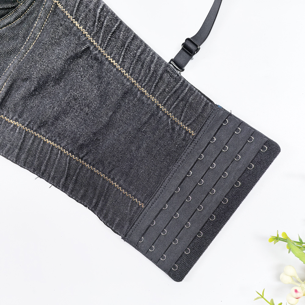 유럽과 미국의 뜨거운 소녀 데님 카미 솔 여성용 외복 내복 아름다운 등 타이트 튜브 탑 가슴 패드 푸시 업 Fishbone Brassiere