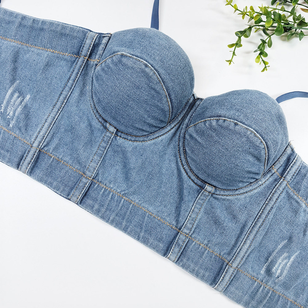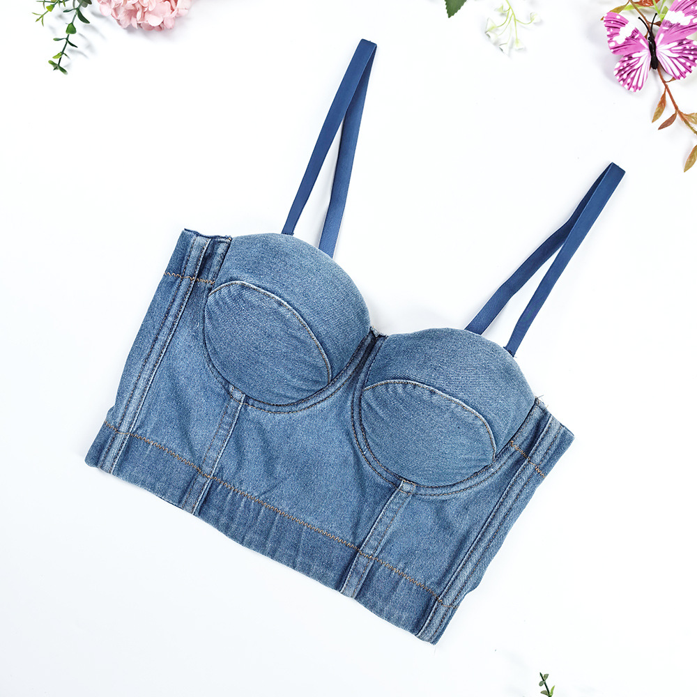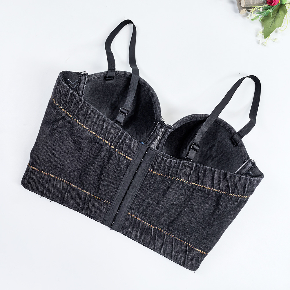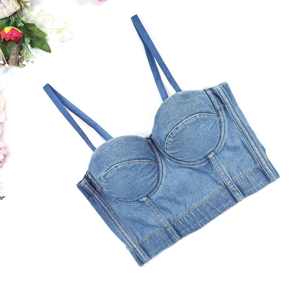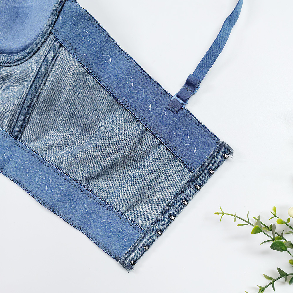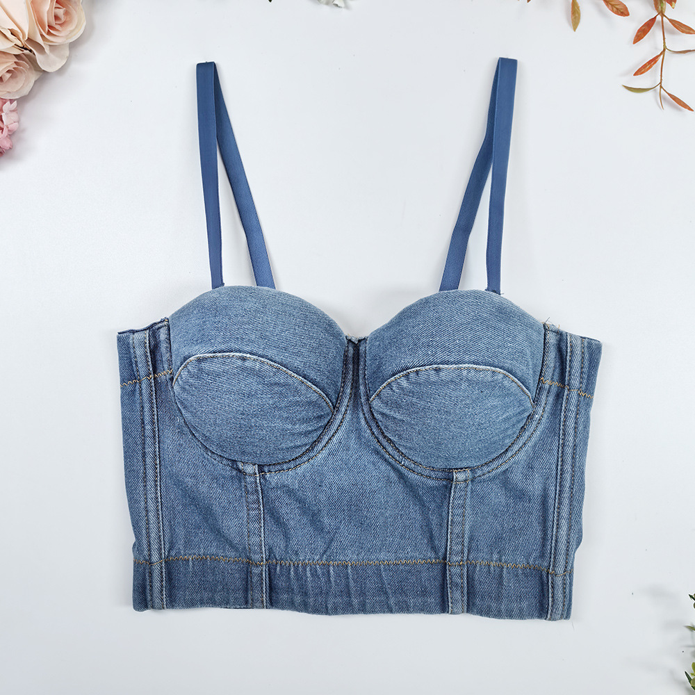 유럽과 미국의 뜨거운 소녀 데님 카미 솔 여성용 외복 내복 아름다운 등 타이트 튜브 탑 가슴 패드 푸시 업 Fishbone Brassiere