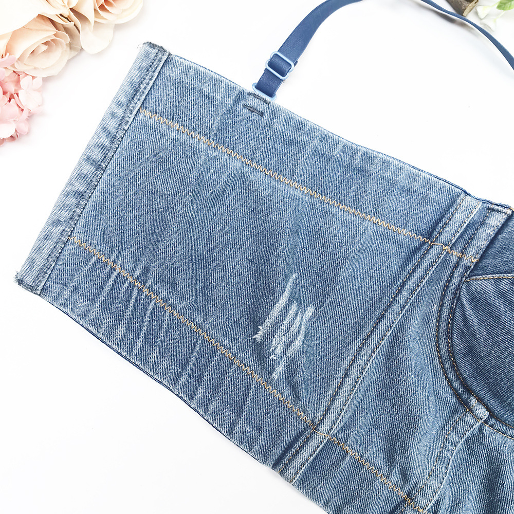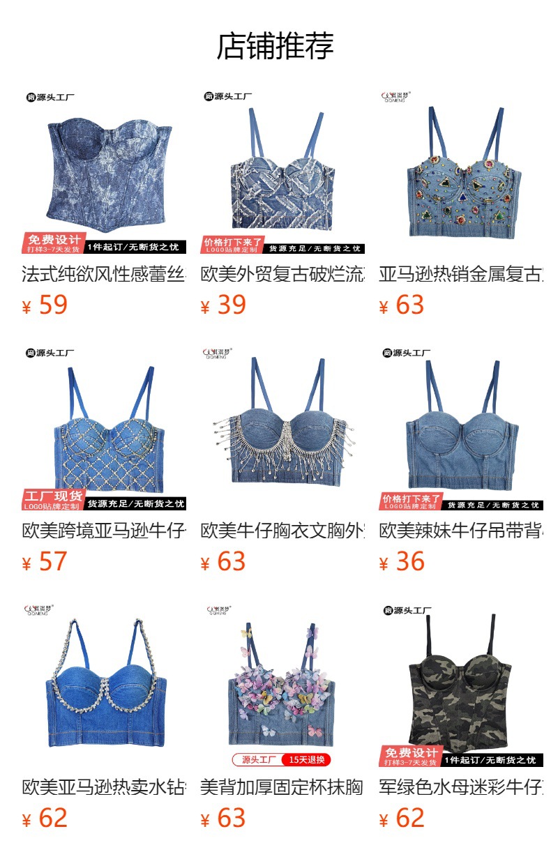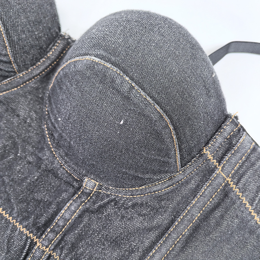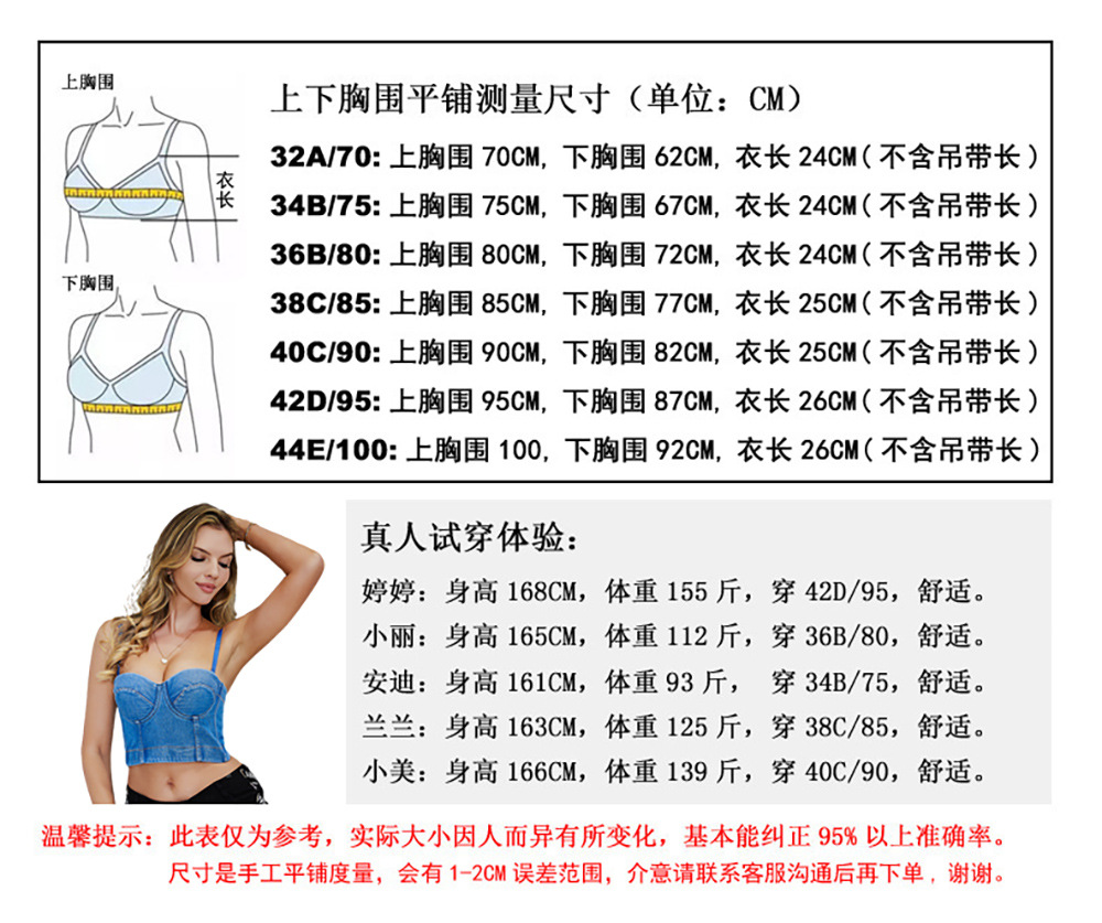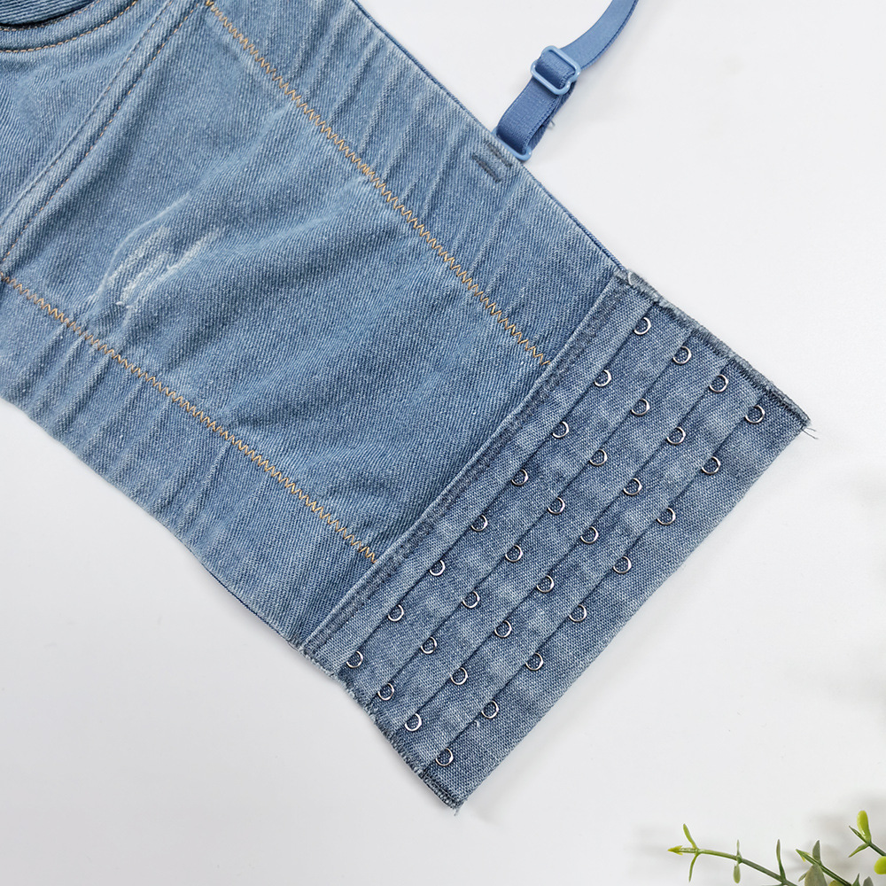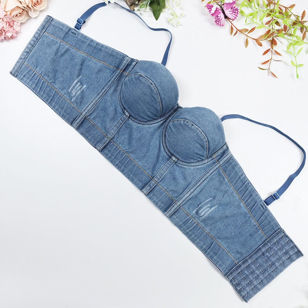 유럽과 미국의 뜨거운 소녀 데님 카미 솔 여성용 외복 내복 아름다운 등 타이트 튜브 탑 가슴 패드 푸시 업 Fishbone Brassiere