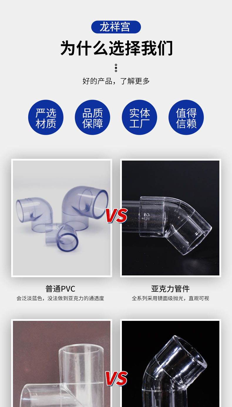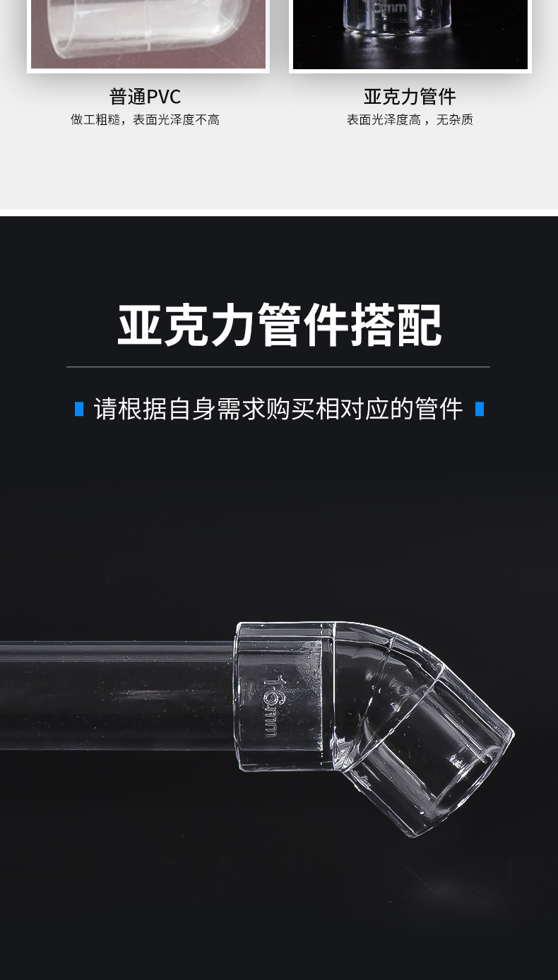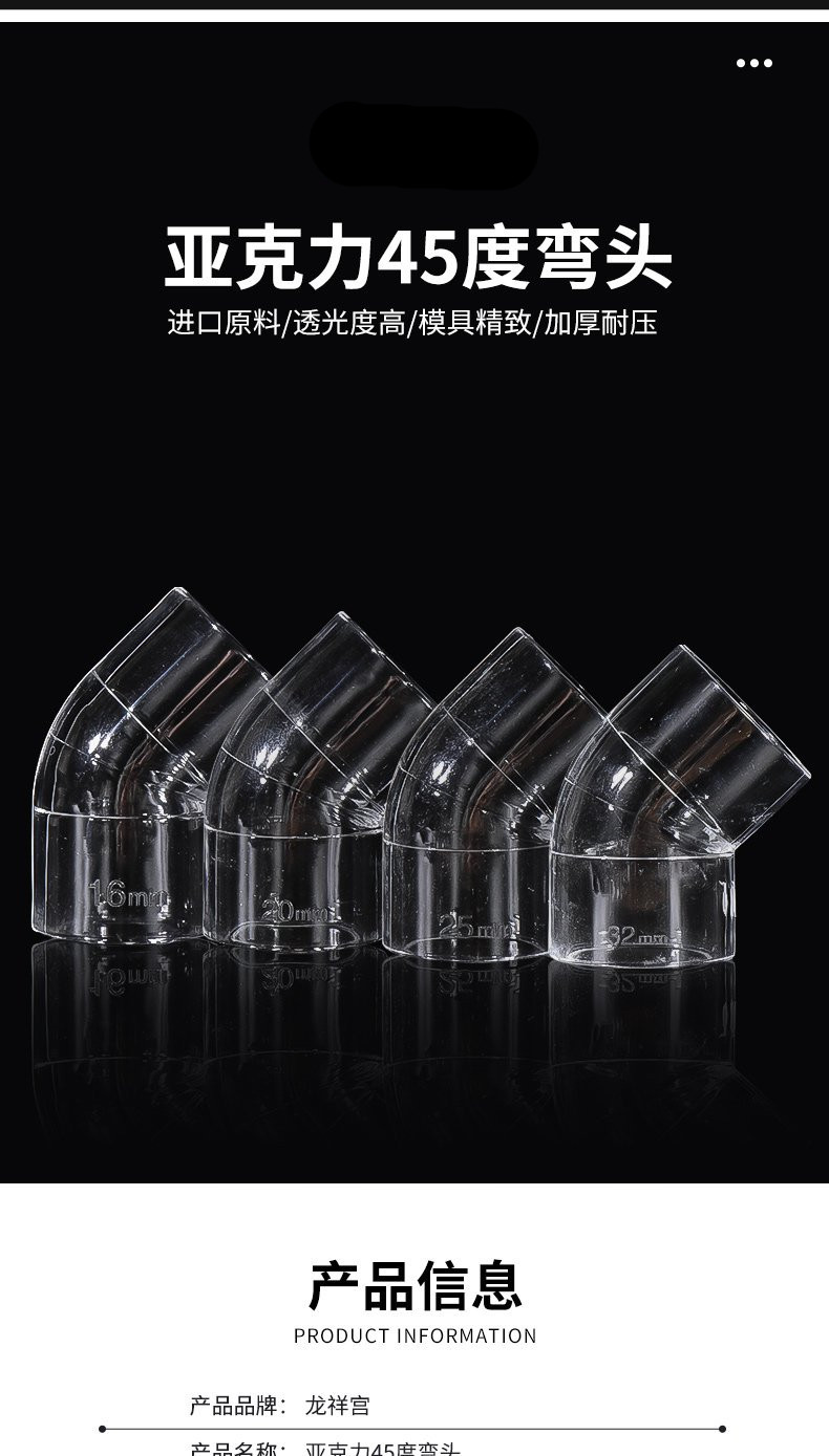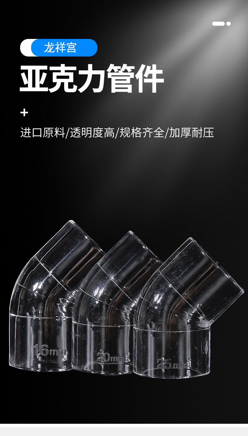 Longxiang Palace 아크릴 투명 45 도 팔꿈치 물고기 탱크 수족관 피팅 PMMA 플렉시 유리