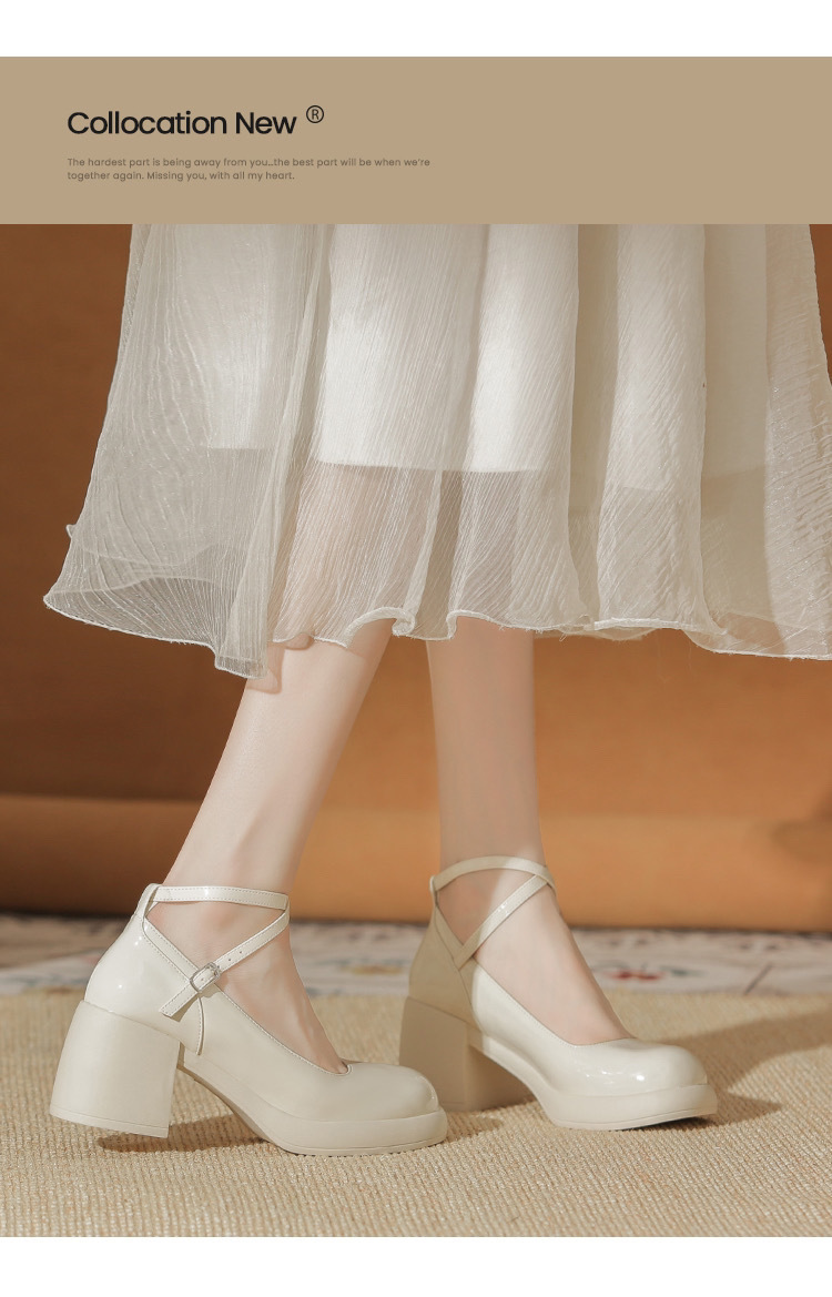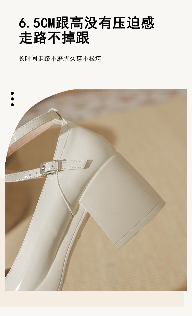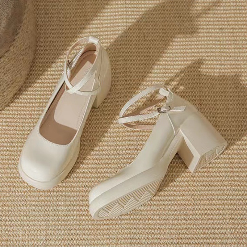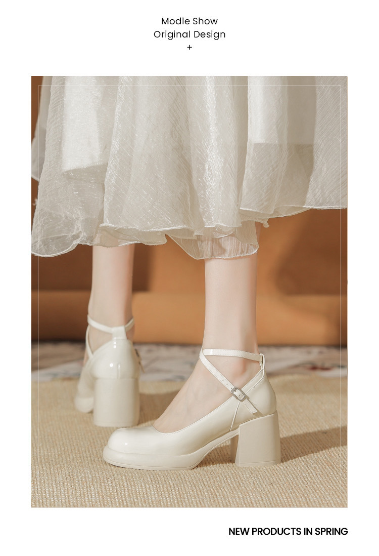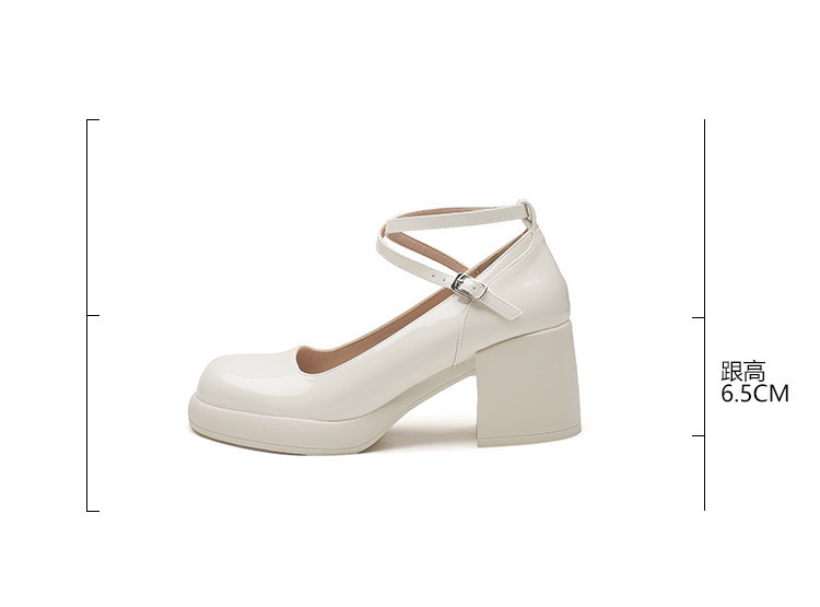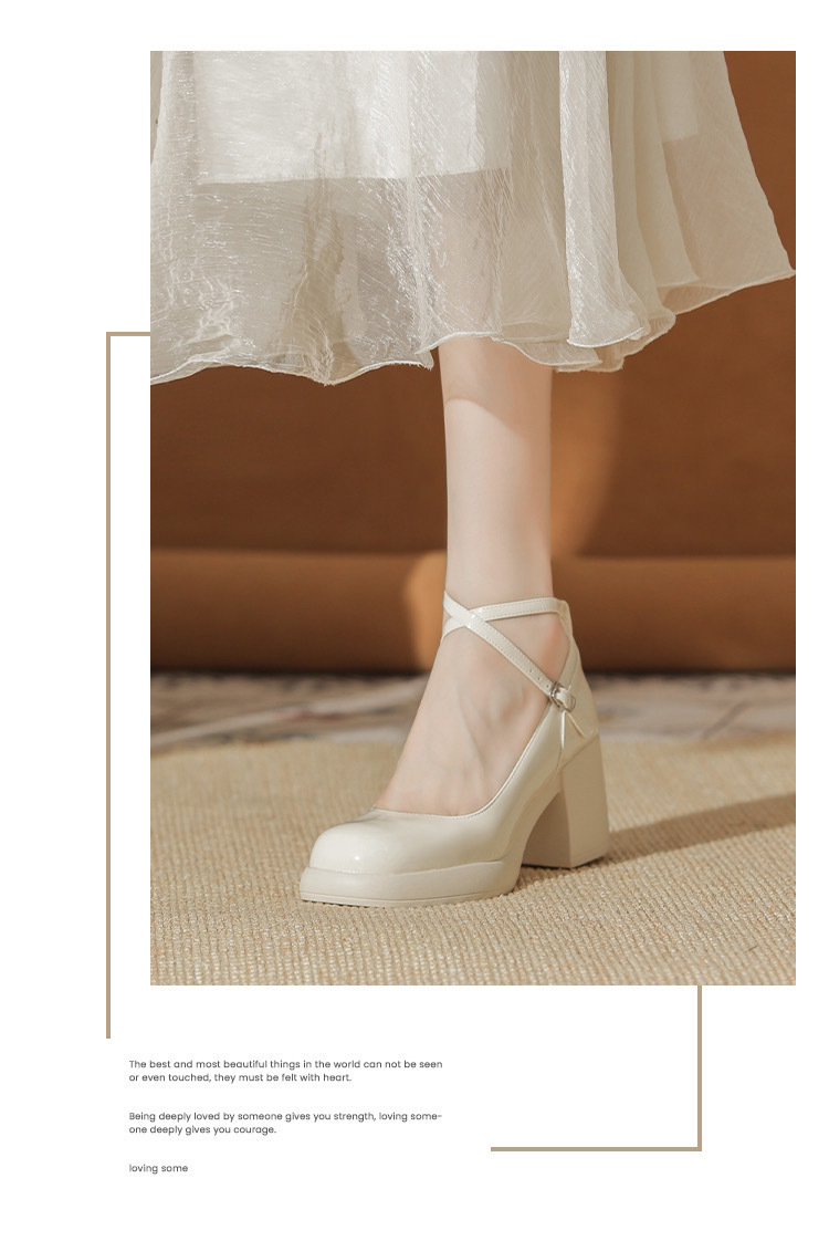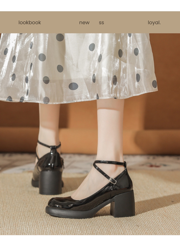 프랑스 스타일 메리 제인 두꺼운 힐 하이힐 여성 여름 2023 새로운 통기성 크로스 버클 싱글 레이어 신발스토어 가기