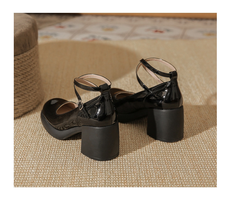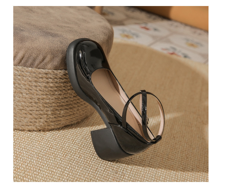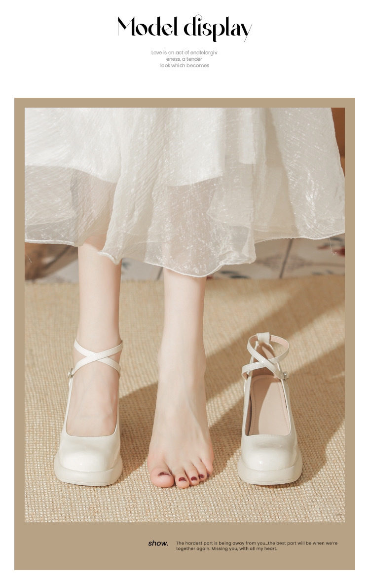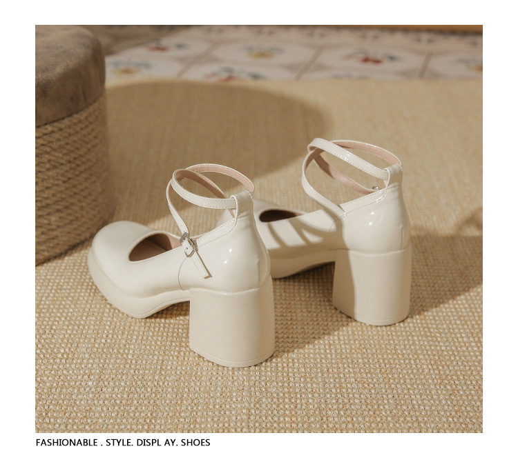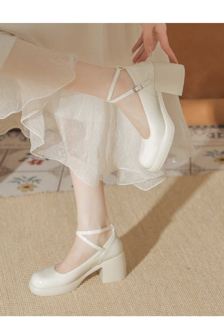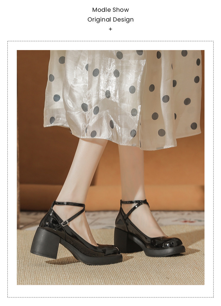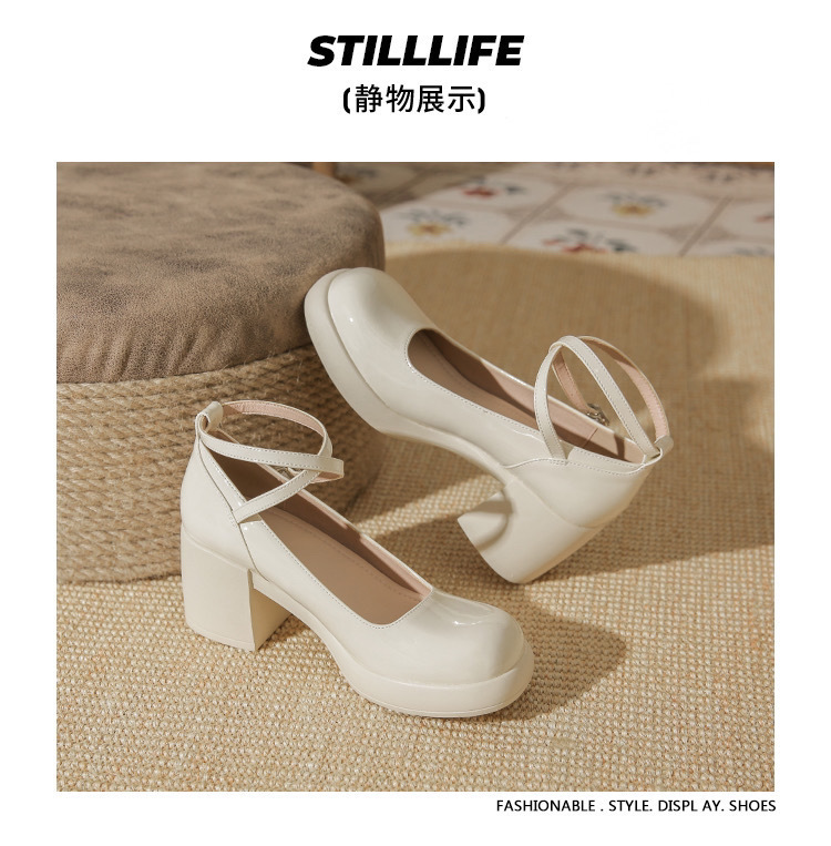 프랑스 스타일 메리 제인 두꺼운 힐 하이힐 여성 여름 2023 새로운 통기성 크로스 버클 싱글 레이어 신발스토어 가기