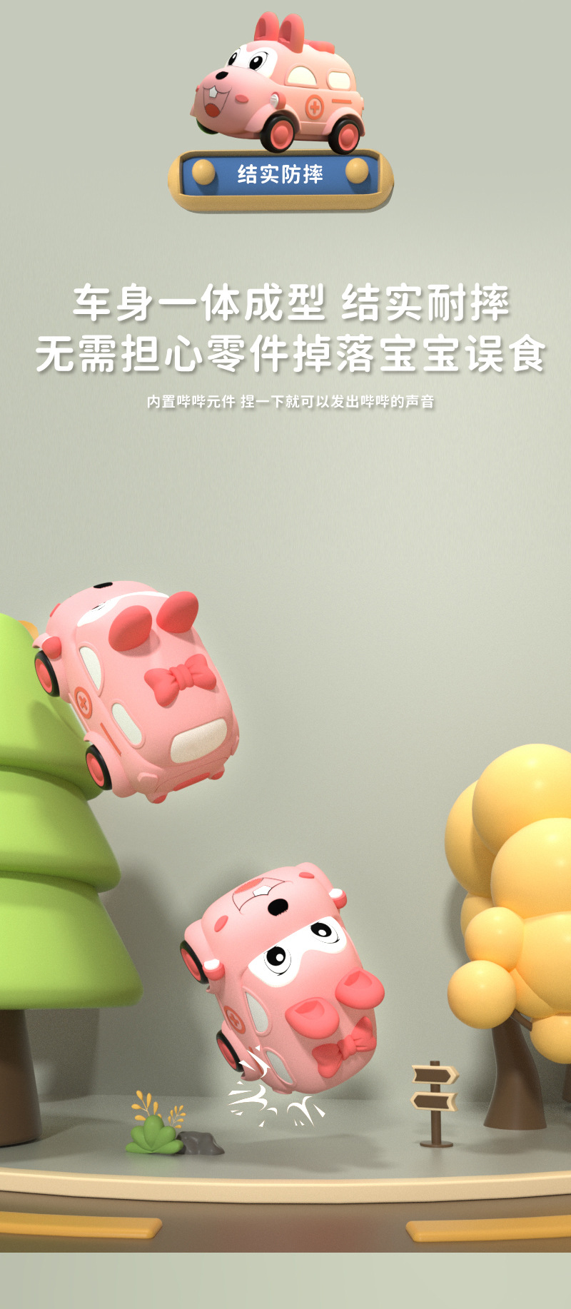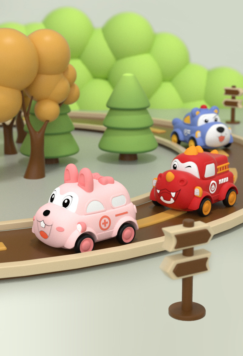 도시 구조 자동차 다시 앞으로 만화 자동차 부드러운 고무 프레스 소리 아기 교육 어린이 장난감 도매스토어 가기